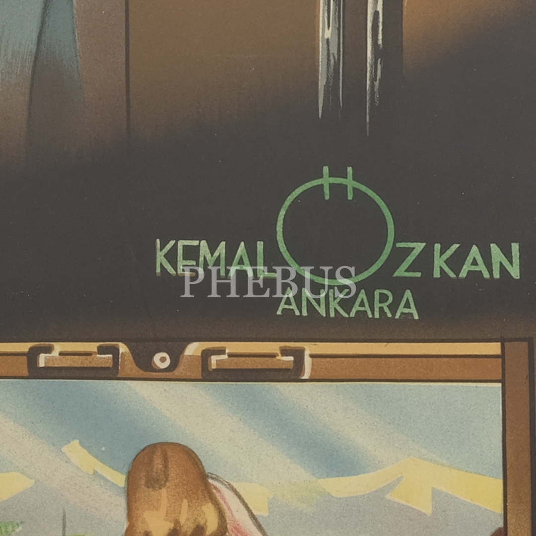 Kemal Özkan tasarımlı T. C. Münakalât Vekâleti DEVLET DEMİRYOLLARI afişi, Apa Ofset Basımevi (İstanbul), çerçevesiyle birlikte 75x105 cm...