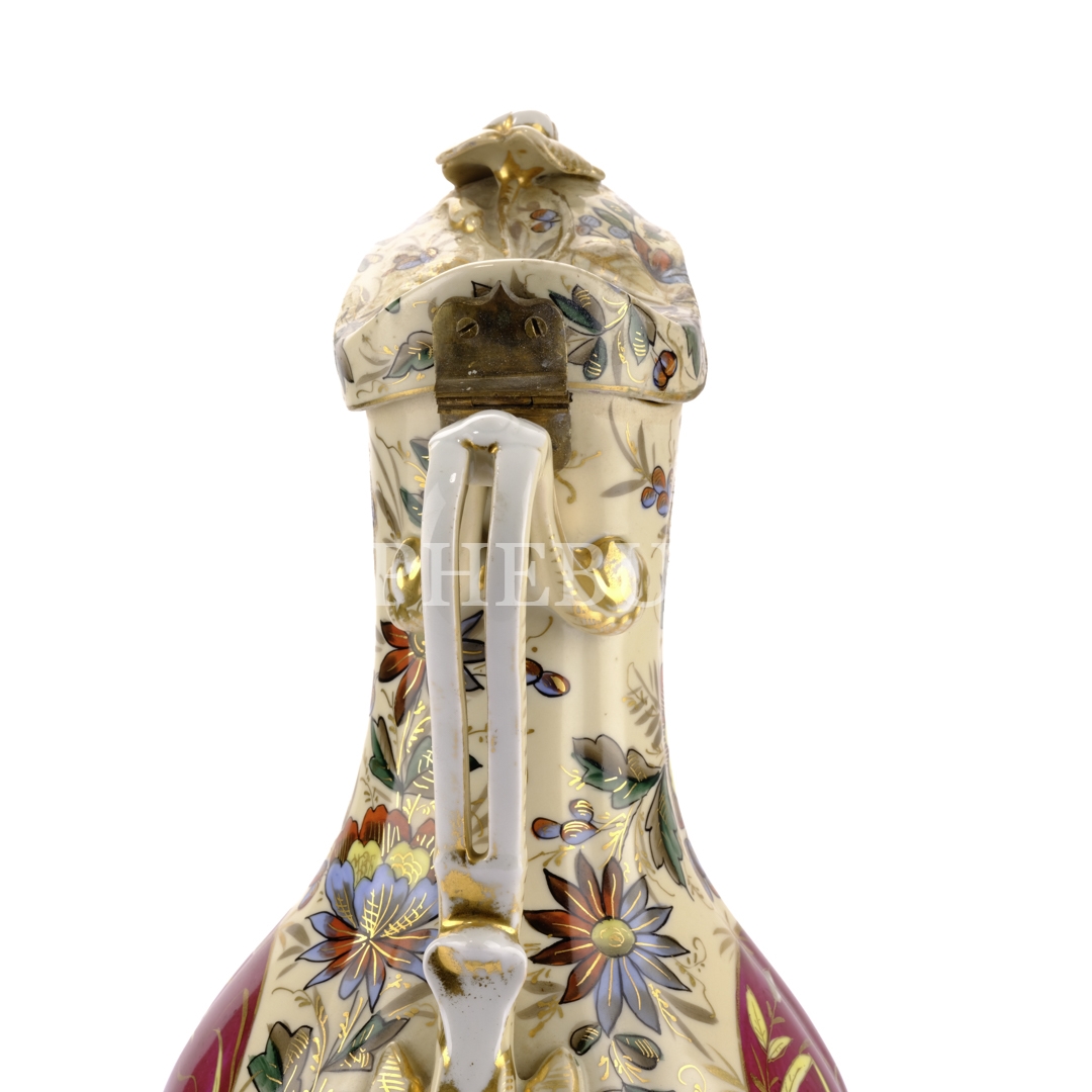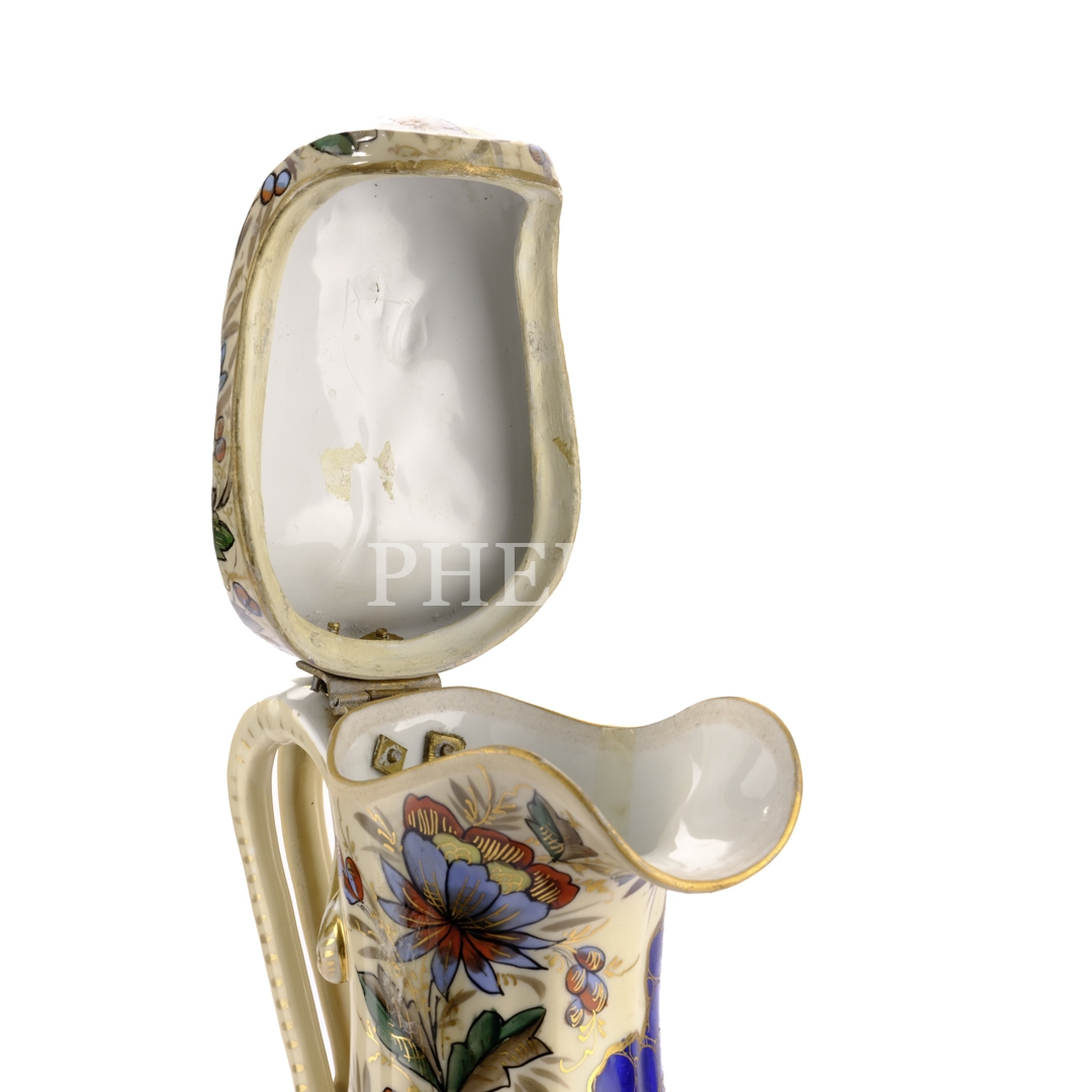 Gövdesi ve kapağı el boyama floral desenlerle bezeli porselen saleplik, kapağın üzeri çiçek motifiyle dekorludur, 35x16 cm...