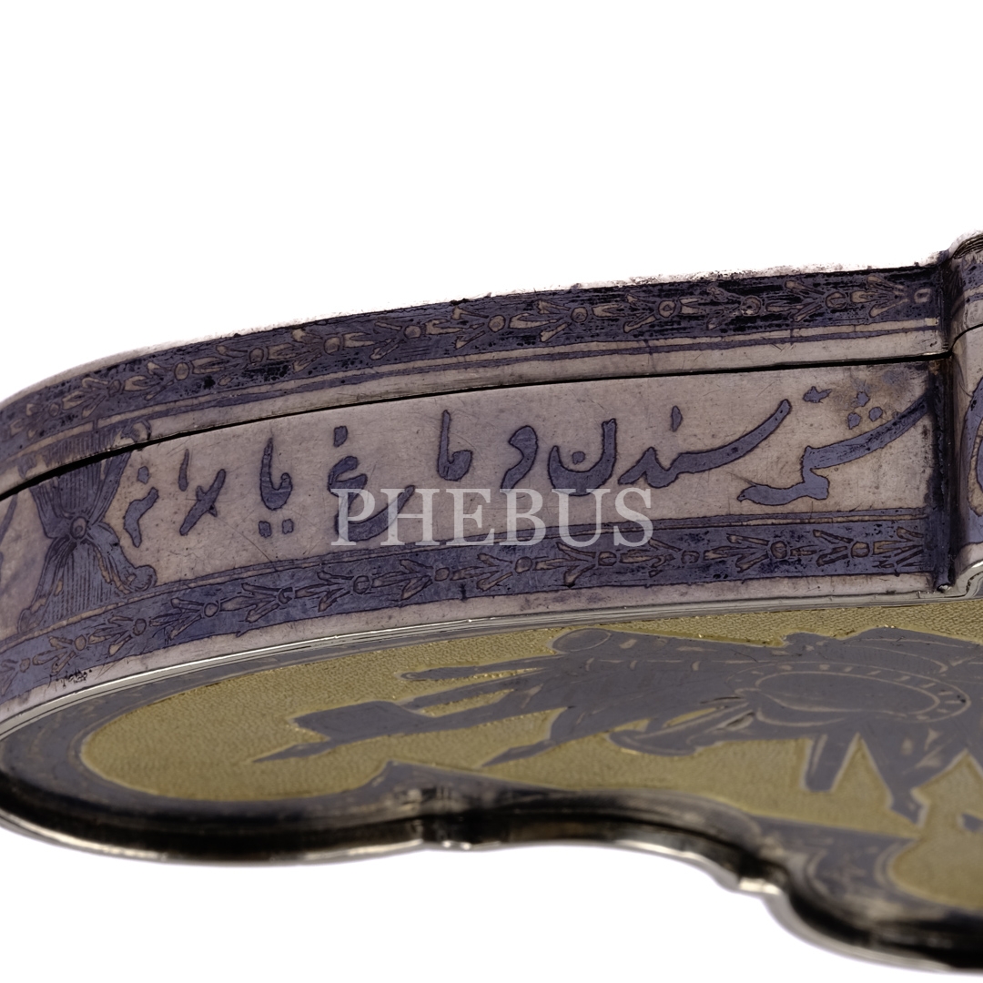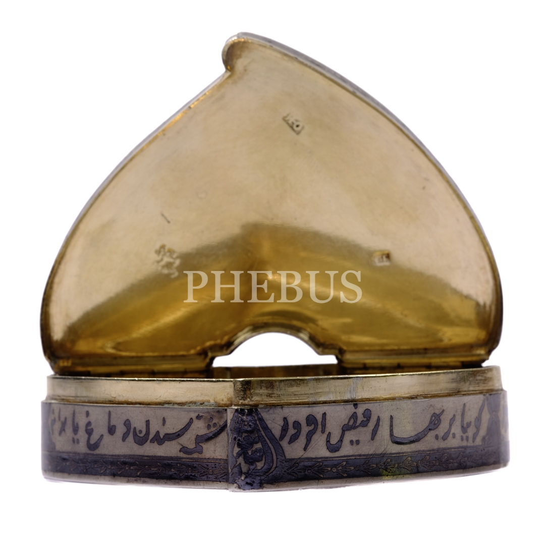 84 ayar "Rus gümüşü" olarak adlandırılan gümüşten üretilmiştir. Kapağında ve tabanında, "Berri-i Hümayun" ve "Bahri-i Hümayun" armaları işlenmiştir. Kenarında, Farsça "Resm nola bu kutu-i zerdûz / Gûyiyâ bir bahâr-ı feyz-efrûz / Şemmesinden dimâğ-ı yârâna / Gele bûy-ı şükûfe-i Nevrûz" şiiri yazılıdır. Kutunun iç kısmındaki damgalar 1700'lü yıllar yani 18. yüzyılı işaret etmektedir.