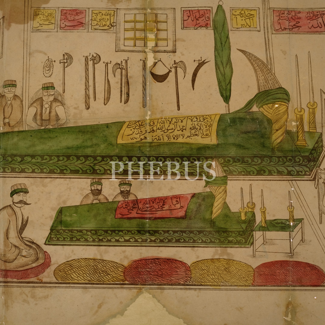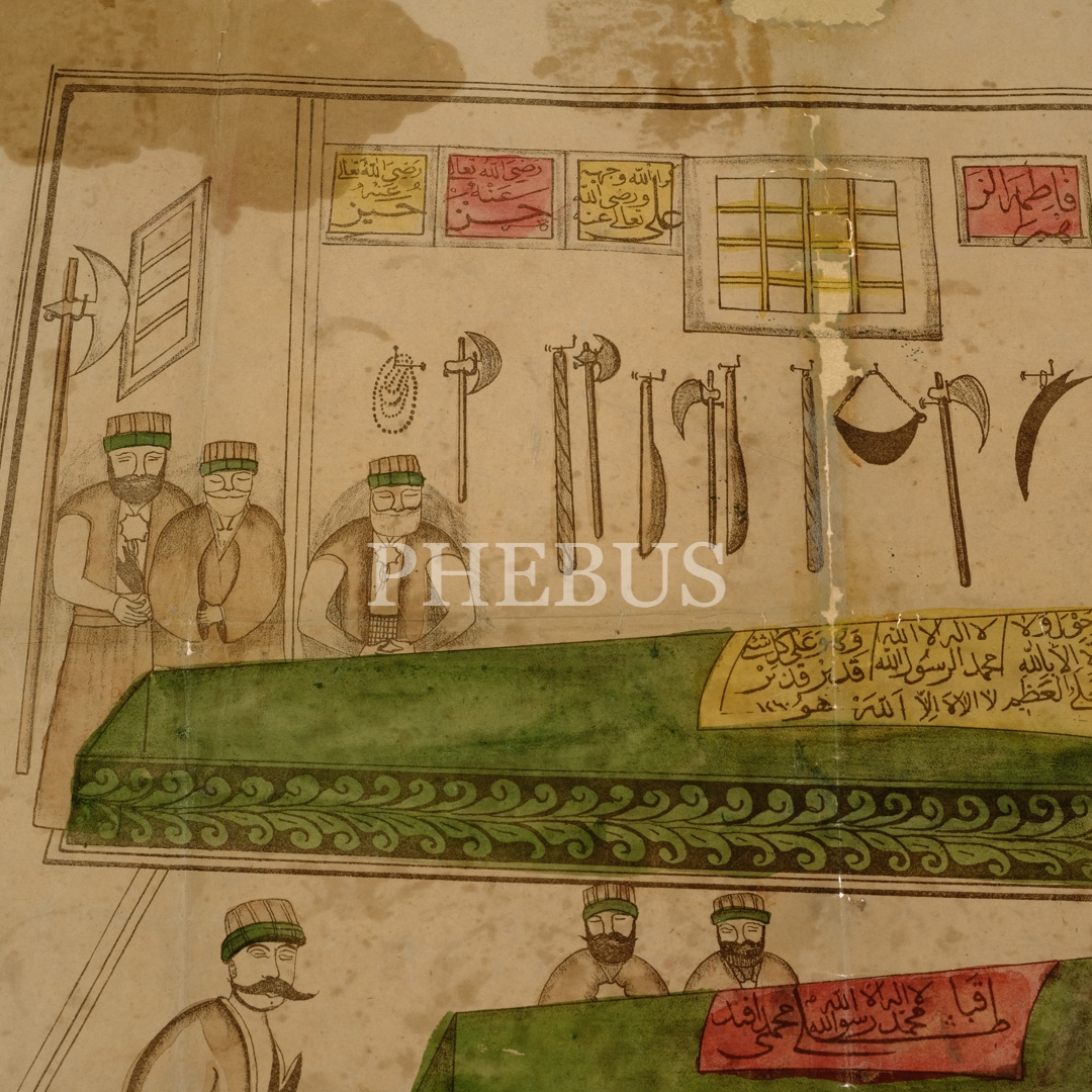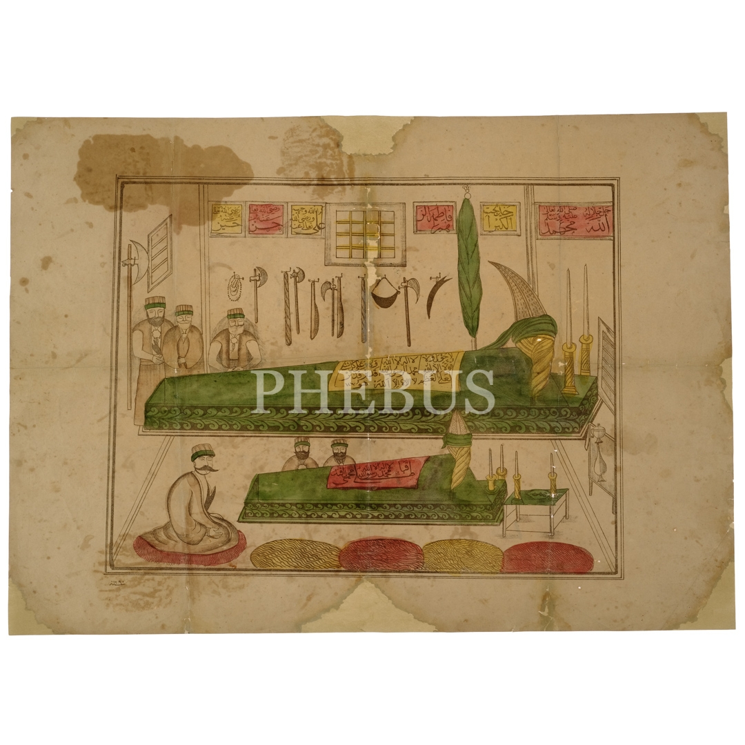Kabataşlı Mehmed Efendi'nin türbesini ziyaret eden müritlerinin resmedildiği Bektaşî tekkesi afişi, 40x55 cm...