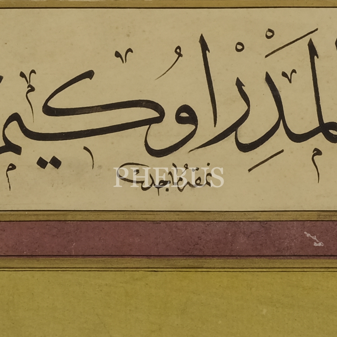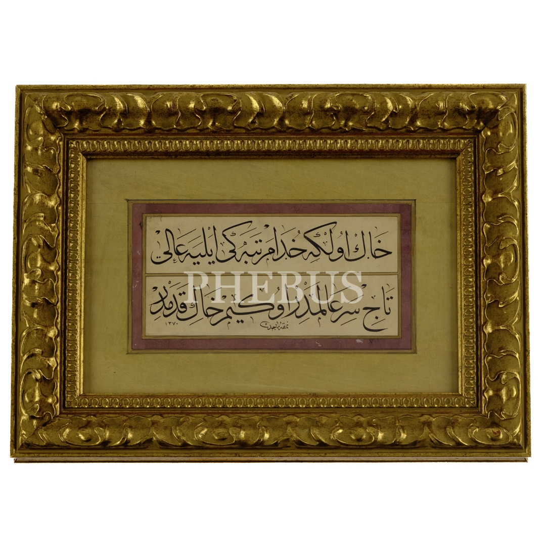 Macid Ayral ketebeli, sülüs hat levhası, 1370, çerçevesiyle birlikte 45x33 cm...