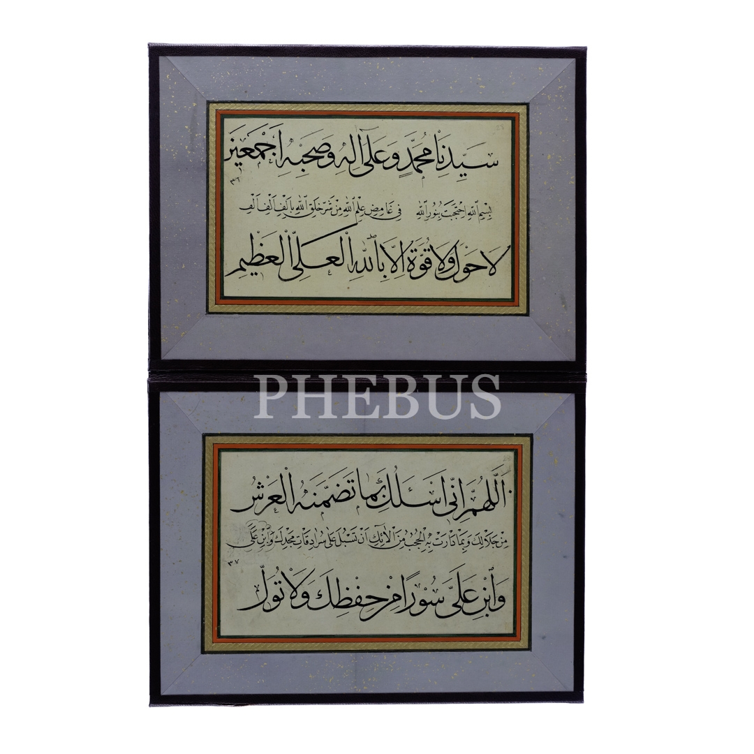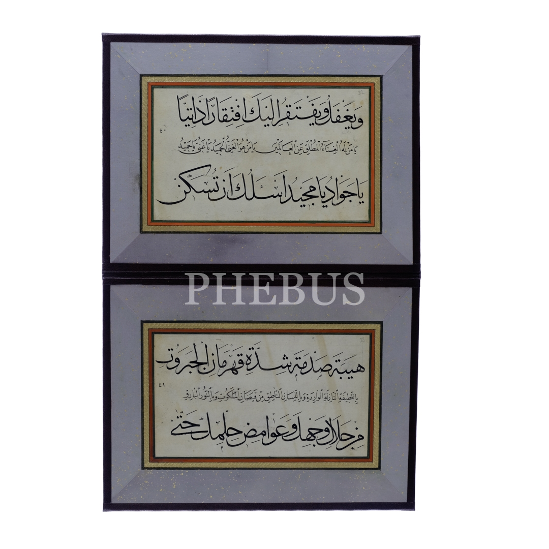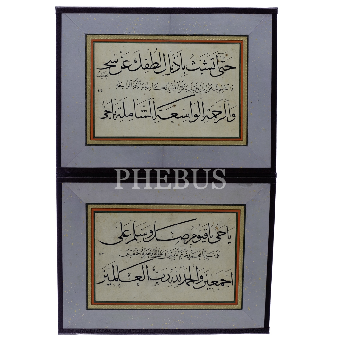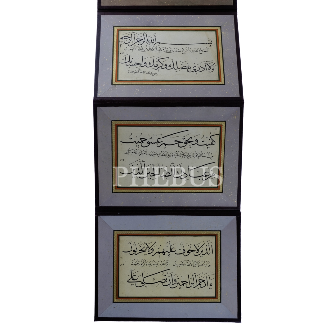 Hafız Osman ekolünden, 11 parça sülüs-nesih kaside murakka, 254x19 cm...