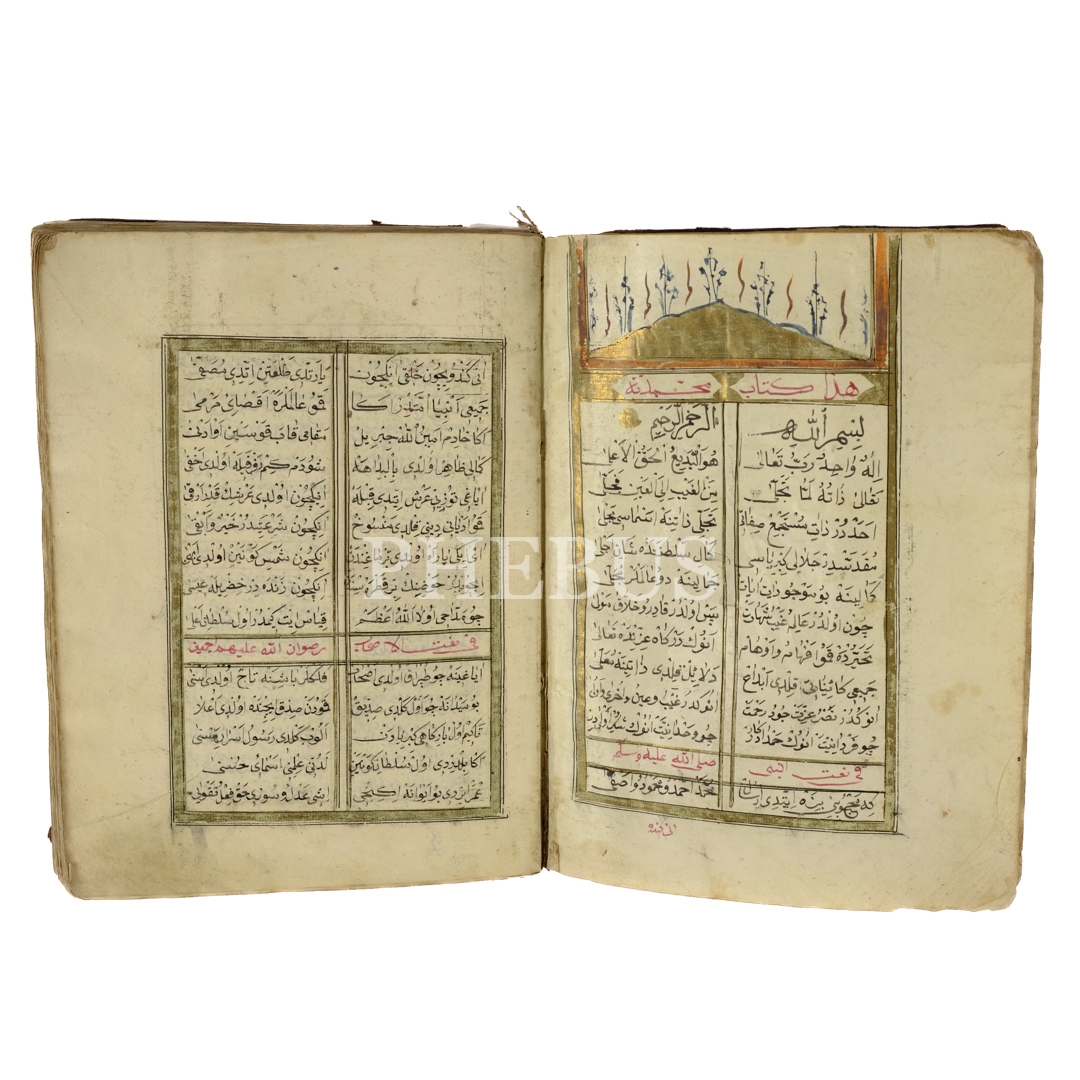 Laz Ömer Vasfi Efendi´den icazetli Mustafa Rakım Efendi´nin talebesi Seyyid Eyüb Sabri Diyarbakırî Efendi´nin nesih hat ile kaleme aldığı, Yazıcıoğlu Mehmed Efendi’nin "Muhammediye" adlı eserinin el yazması nüshası, 1248, 590 sayfa, 19x24 cm...