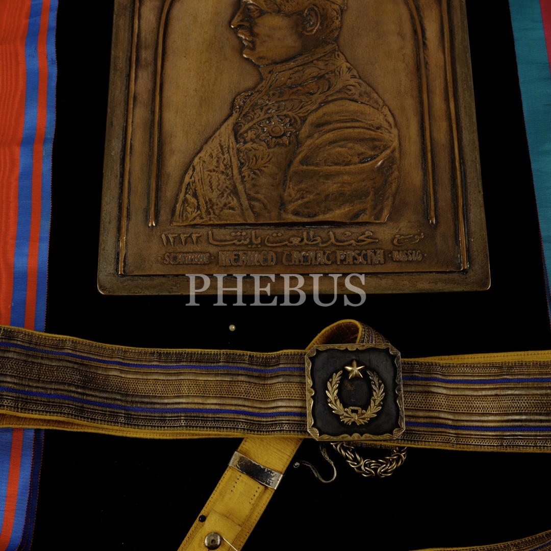 Ünlü Yahudi heykeltıraş ve Siyonist aktivist Alfred Nossig tarafından Sadrazam Talat Paşa´ya hediye edilen 1333 (1915) tarihli bakır rölyef, Yahudi kökenli Alman heykeltıraş Alexander Oppler imzalı, 1917 tarihli bronz madalyon ve Talat Paşa´nın üniformasından gümüş ve tuğra damgalı kemer ve kuşaklar (2 adet)...