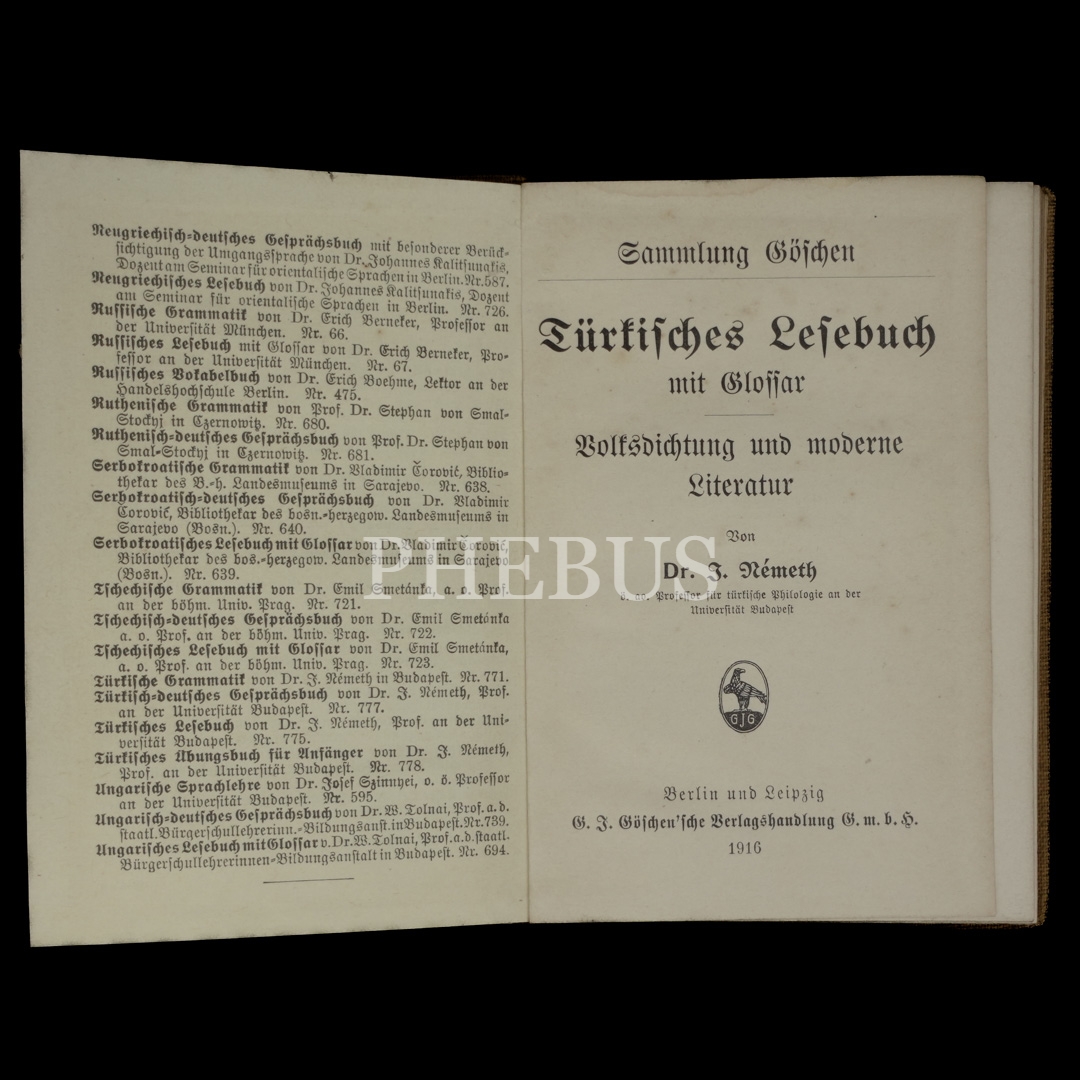 Türkisches Lesebuch mit Glossar, Dr. Remeth, 1916, Berlin ve Liepzig, 106 sayfa, 15x10 cm...