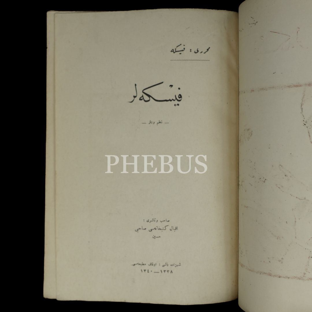 FİSKELER, Fiske (Orhan Seyfi Orhon), 1338, İkbal Kütüphanesi, 20x14 cm...