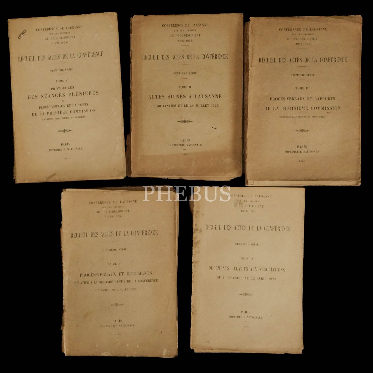 RECUEIL DES ACTES DE LA CONFERENCE (toplam 7 cilt), Conference de Lausanne sur les affaires du Proche-Orient (1922-1923), 1923, Imprimerie Nationale, Paris, 645+149+375+75 sayfa (ekler hariç), 22x32 cm...