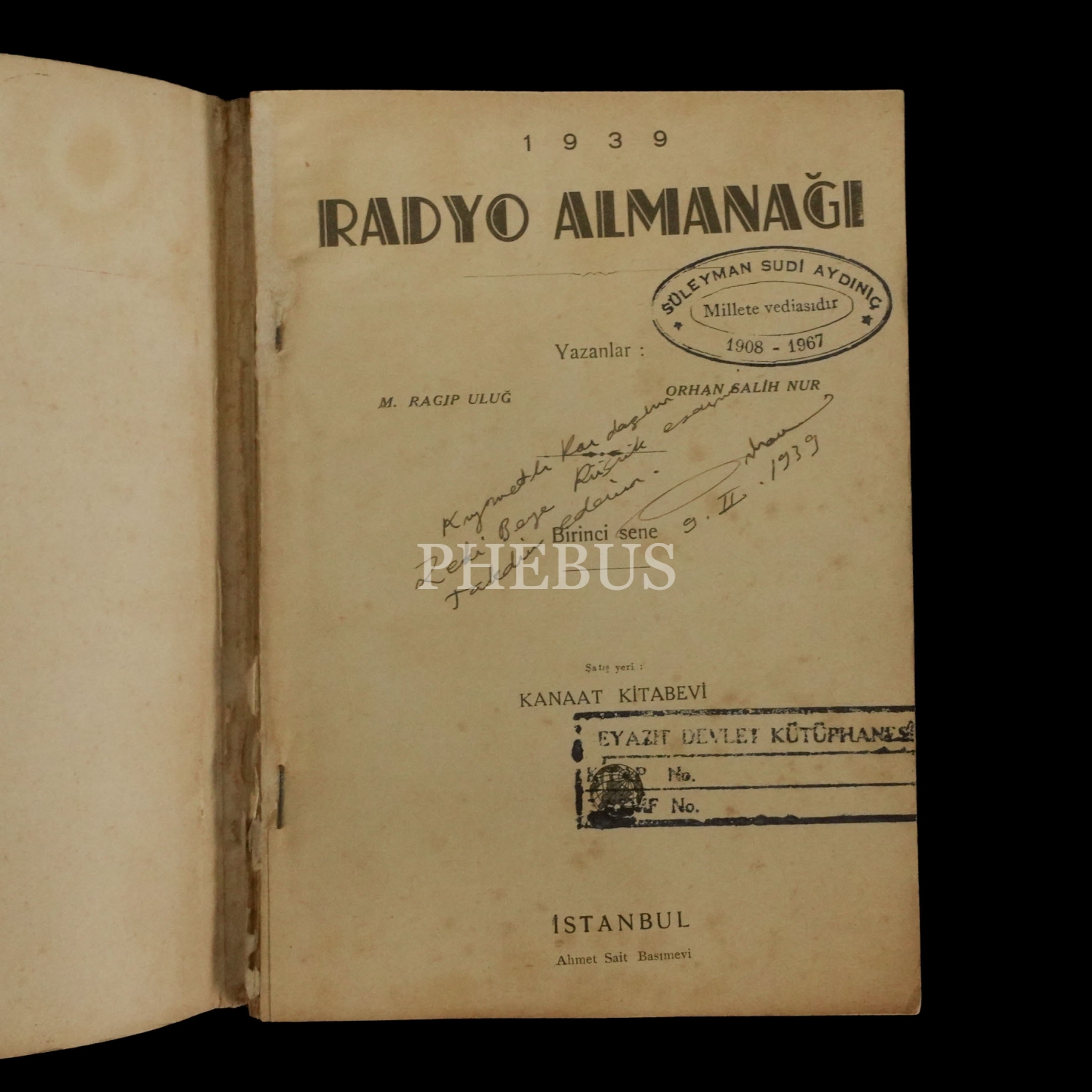 RADYO ALMANAĞI, (yazanlar: M. Ragıp Uluğ & Orhan Salih Nur), 1939, Ahmet Sait Basımevi, 164 sayfa, 14x19 cm...