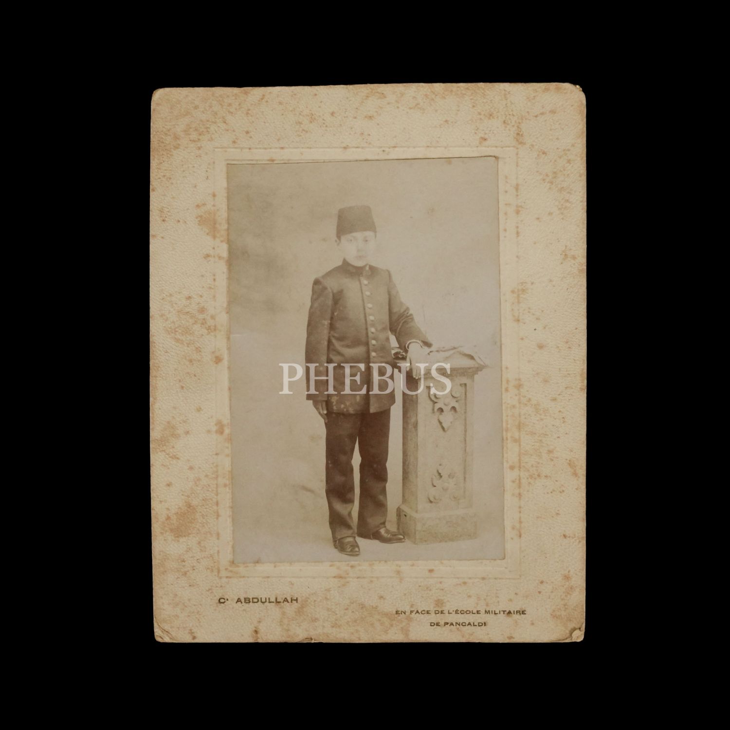 Bir askeri okul talebesinin C. (Cosmi) Abdullah Fotoğrafhanesi´nde (Pangaltı) aldırdığı stüdyo hatıra kabin fotoğrafı, fotoğraf 10x15 cm, paspartu 16x20 cm...