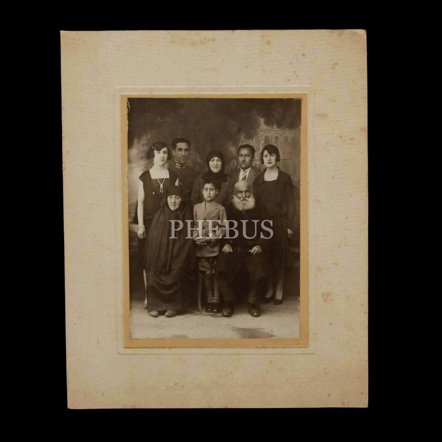 Dört neslin bir araya geldiği bir stüdyo hatıra fotoğrafı, fotoğraf 11x15 cm, paspartu 24x20 cm...