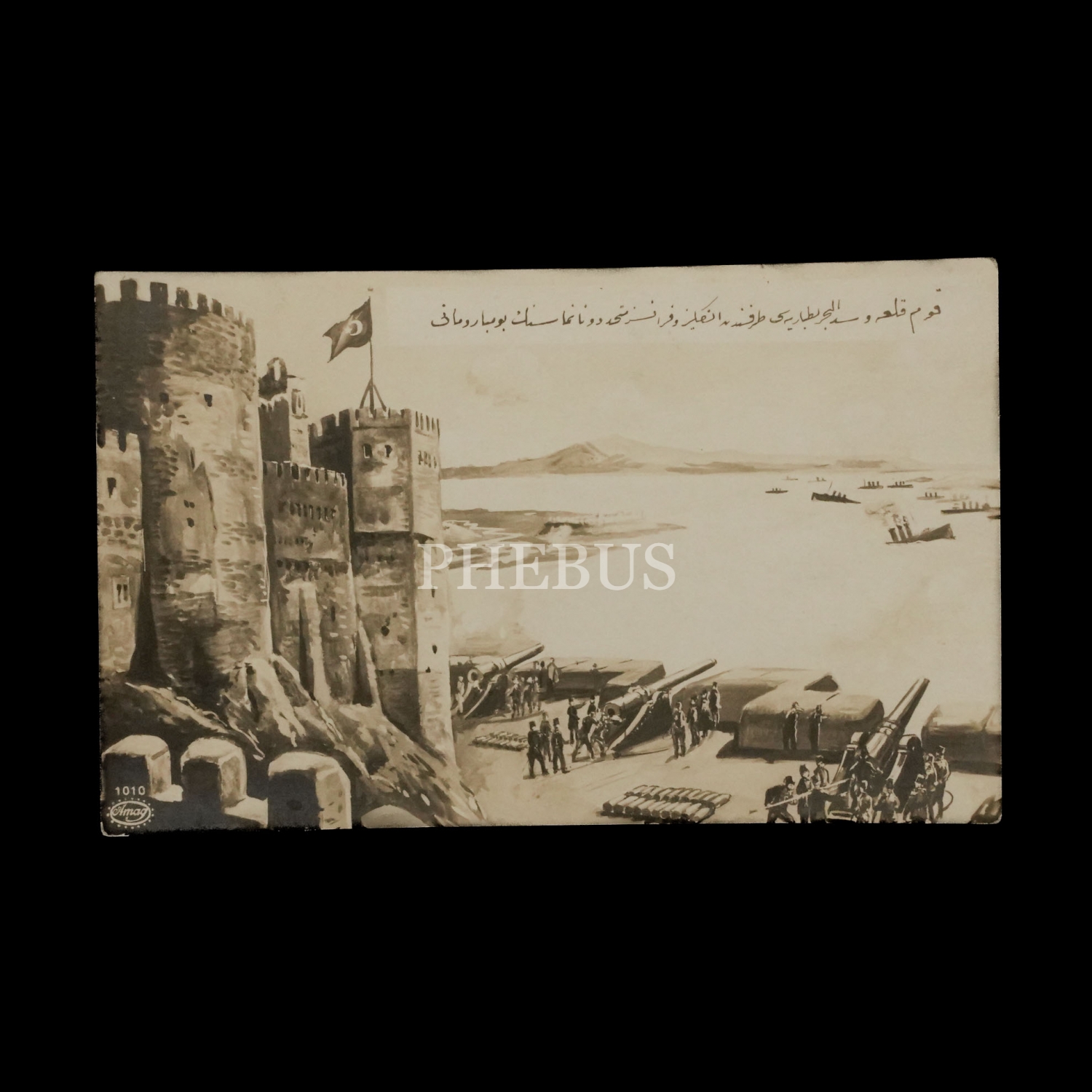 Kumkale ve Seddülbahir bataryalarından İngiliz ve Fransız donanmalarını batıran Türk askerleri, 14x9 cm...