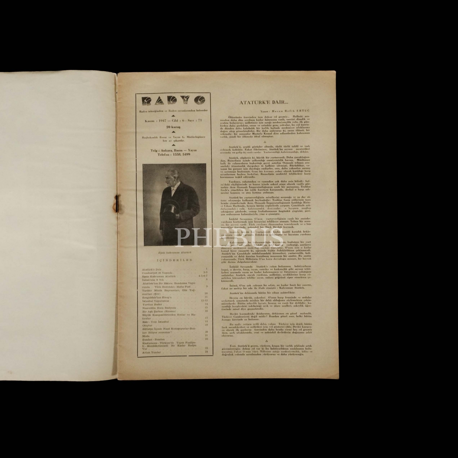 RADYO dergisinin, Mustafa Kemal Atatürk´ün ölüm yıldönümü konulu özel nüshası, Kasım 1947, Sayı: 71, 24 sayfa, 24x34 cm...