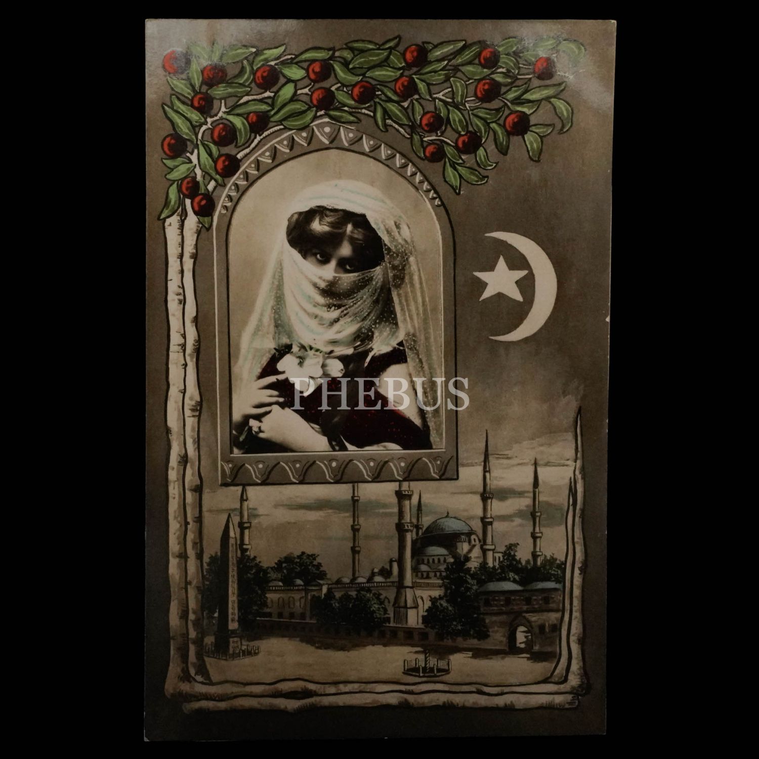 Sultanahmet Meydanı ve Türk kadını görselli, ay-yıldız ve çiçek motifleriyle bezeli parçalı kartpostal, 9x14 cm...