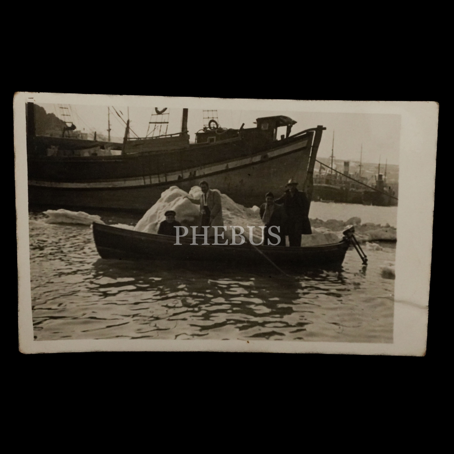 1954 Kışı´nda Boğaziçi´ni kaplayan buzlardan birinin yanında alınmış hatıra fotoğrafı, "Foto Amber - Beyoğlu" kaşeli, 14x9 cm...