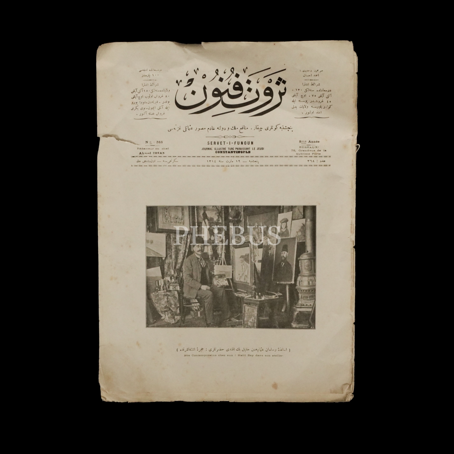 Ressam Halil Bey´in atölyesinde alınan fotoğrafına kapağında yer veren SERVET-İ FÜNUN dergisinin 19 Mart 1314 tarihli nüshası, 24x34 cm...