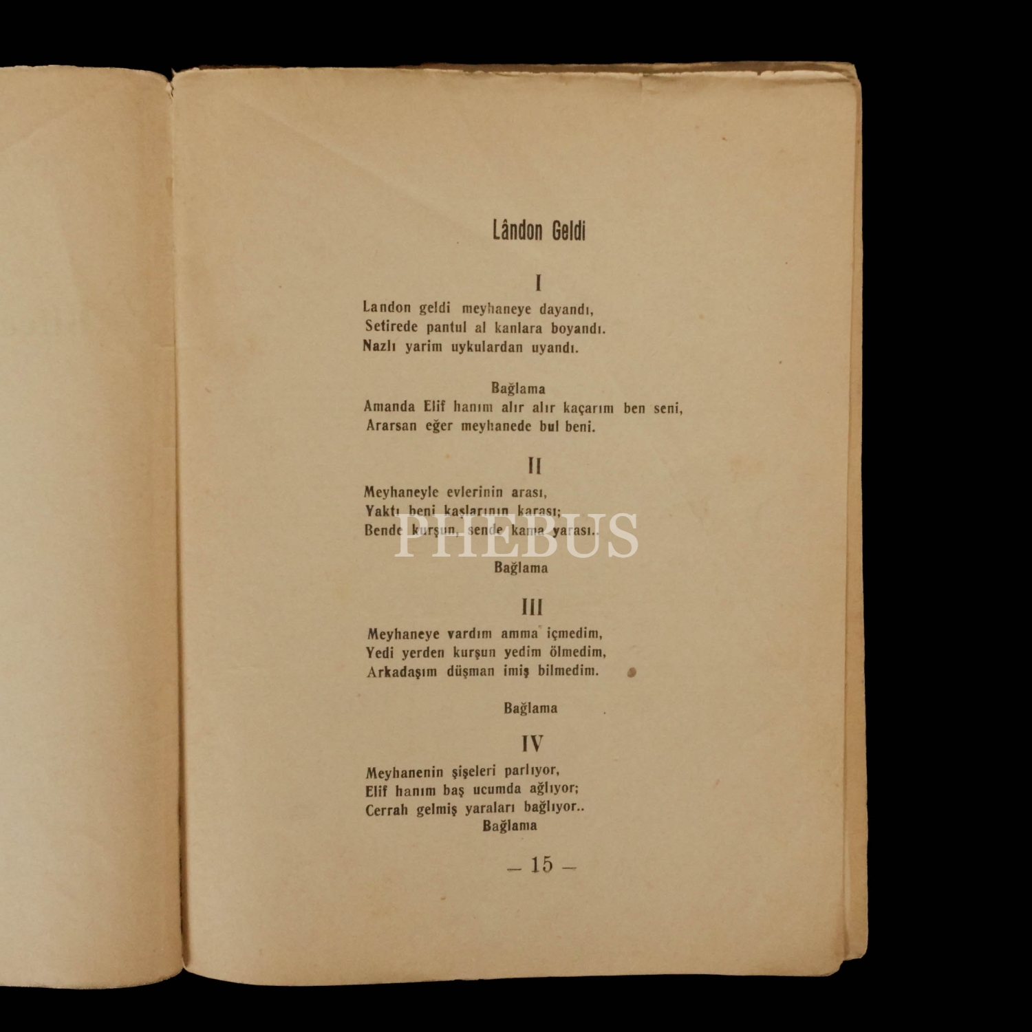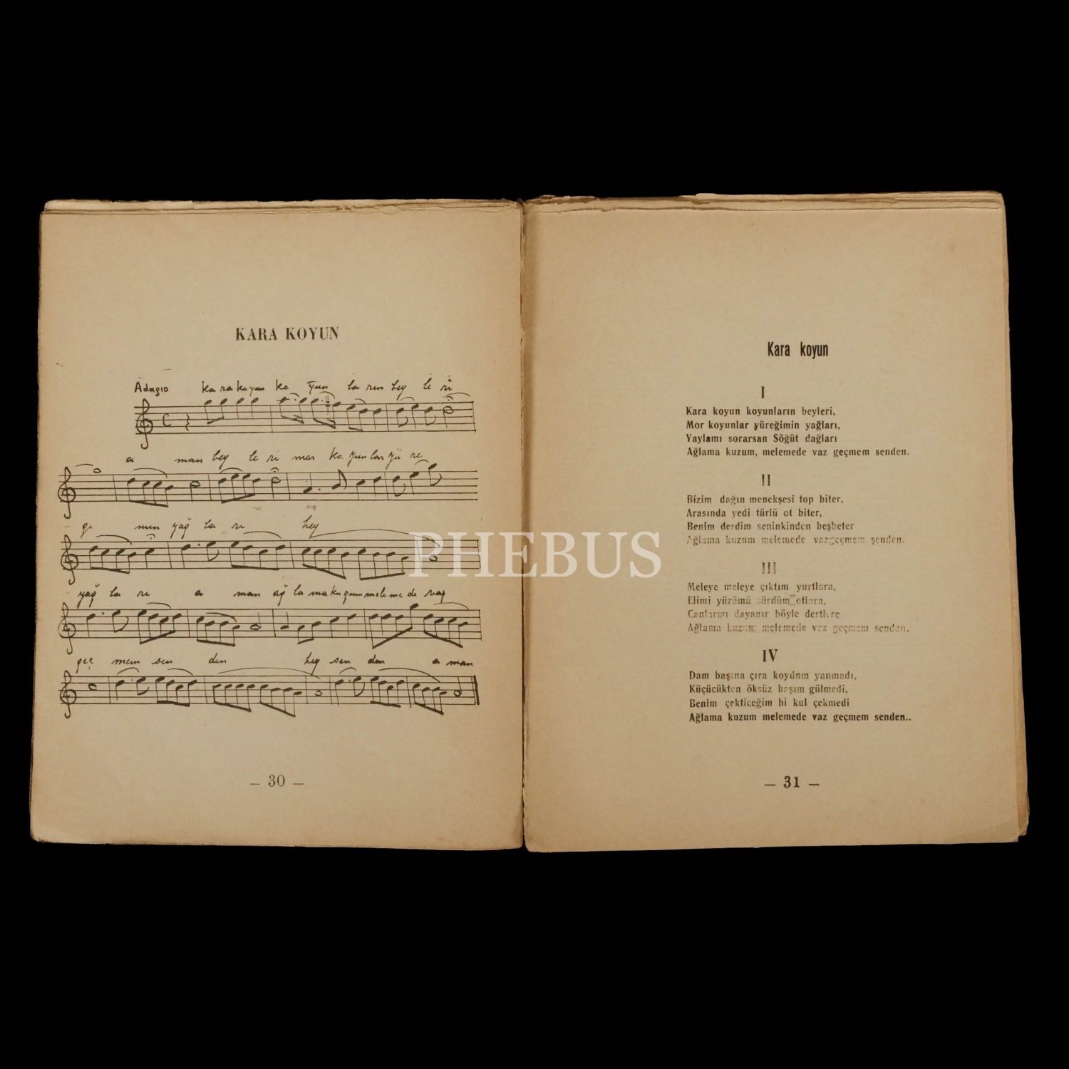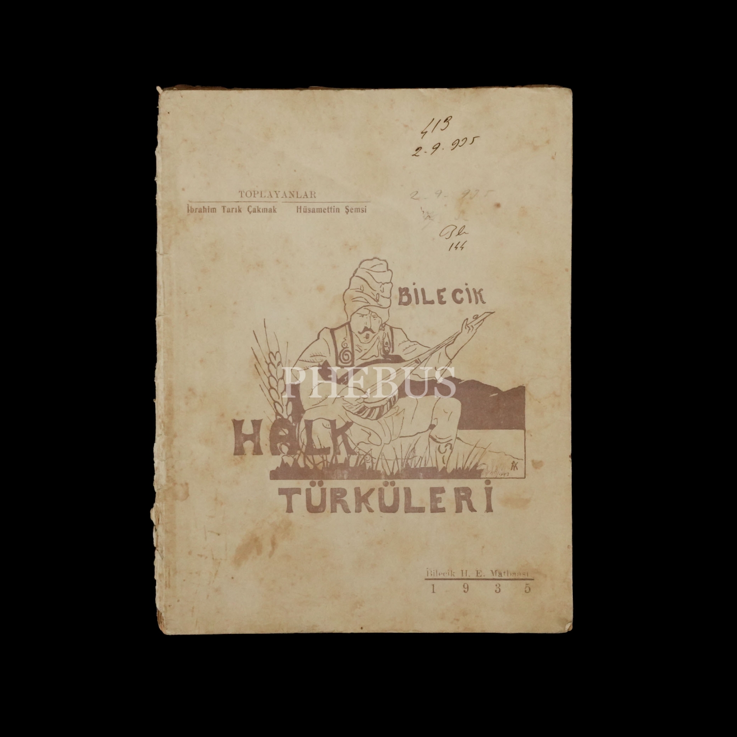 BİLECİK HALK TÜRKÜLERİ, (toplayanlar: İbrahim Tarık Çakmak & Hüsamettin Şemsi), 1935, Bilecik H. E. (Halk Evi) Matbaası, 69 sayfa, 17x23 cm...