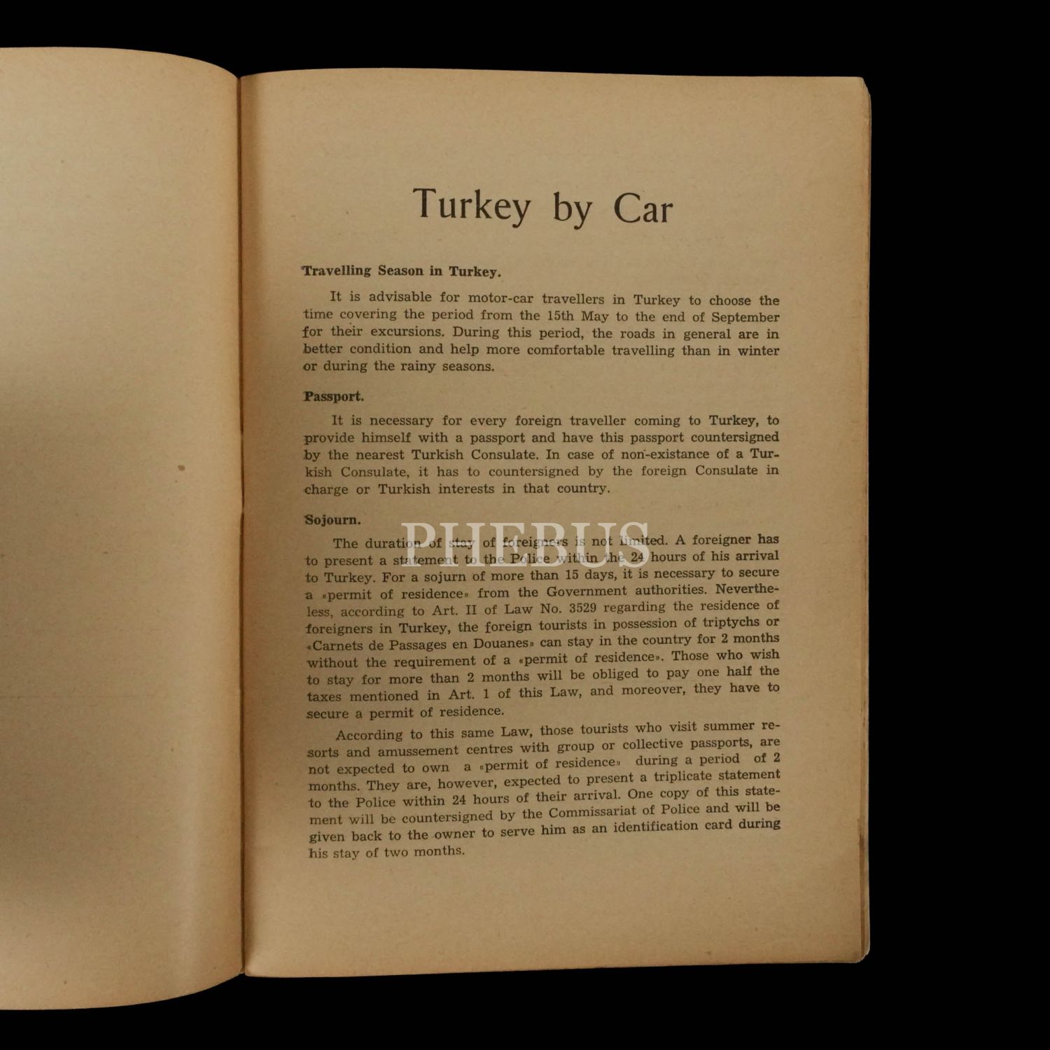 TURKEY BY CAR, Touring and Automobile Club, 1952, Henri Zelliç ve Mahdumu Basımevi, 53 sayfa, 14x20 cm...