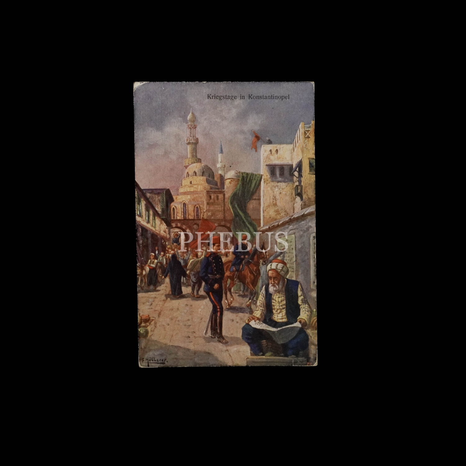 "Konstantinopolis´te Savaş Günleri" başlıklı, hayali bir İstanbul manzaralı kartpostal, "Kriegstage in Konstantinopel", 9x14 cm...