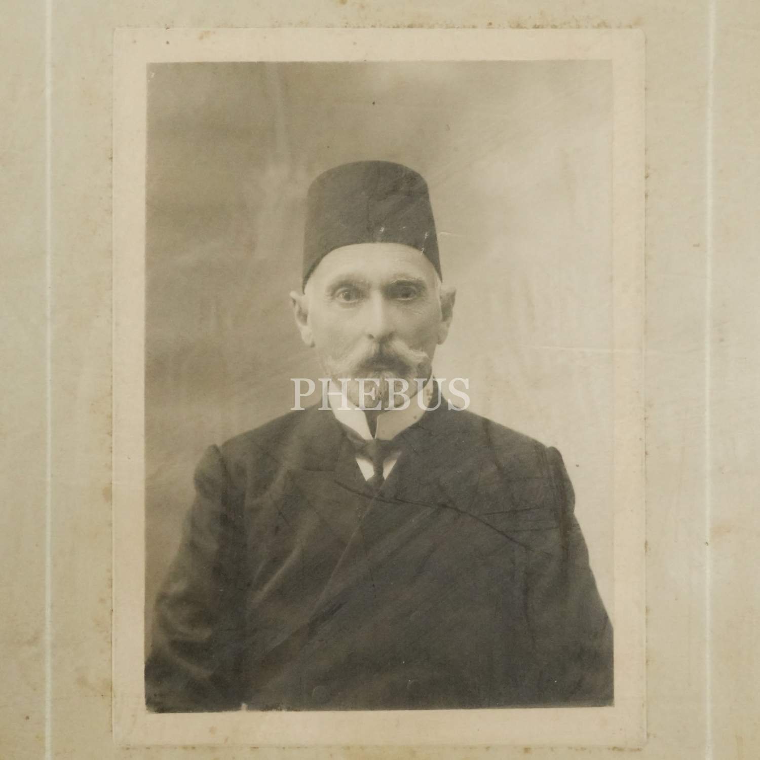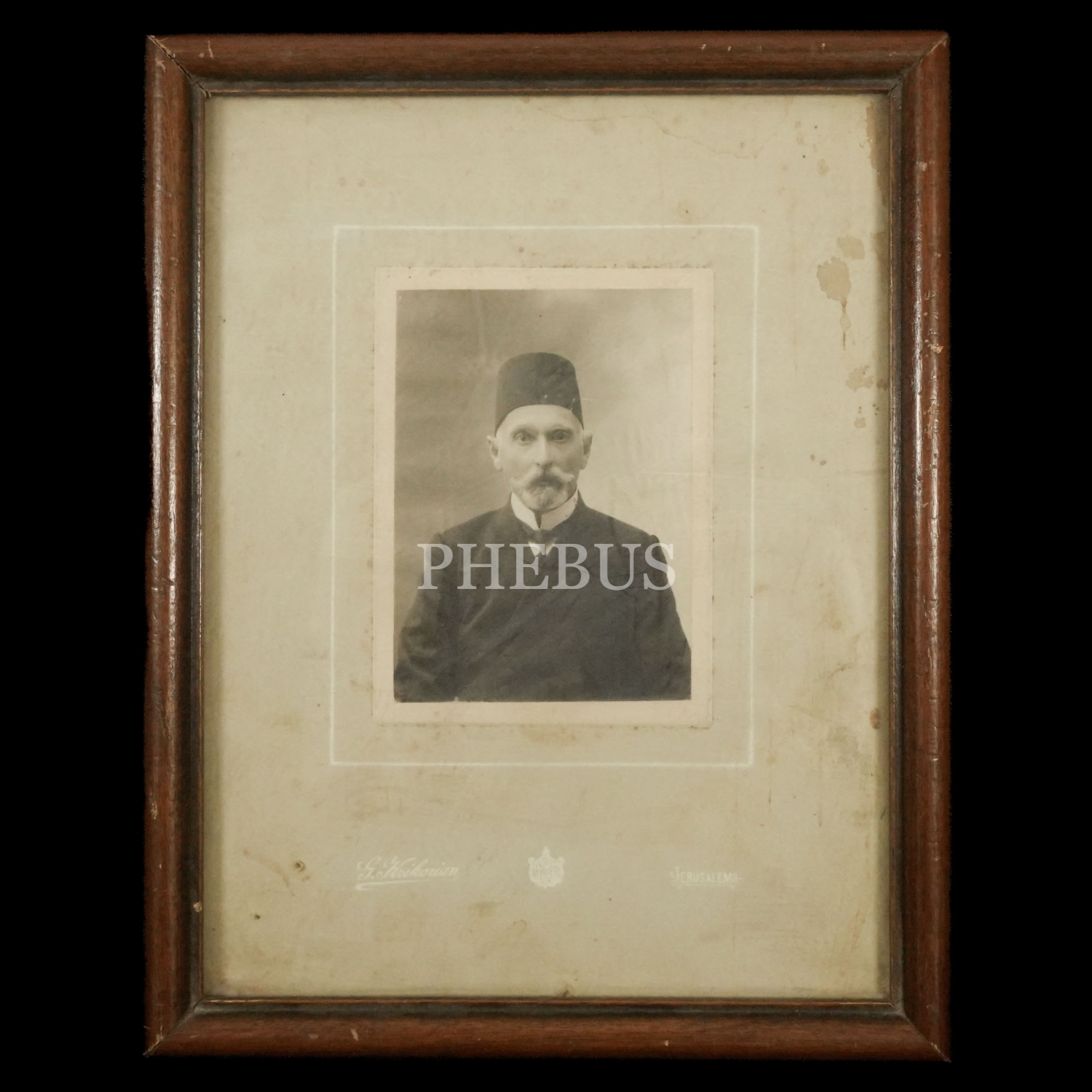 Reji İdaresi Personel Müdürü Jan Lazian´ın, G. (Garabed) Krikorian Fotoğrafhanesi´nde (Jerusalem [Kudüs]) aldırdığı stüdyo hatıra fotoğrafı, fotoğraf 9x12 cm, çerçevesiyle birlikte 21x27 cm...