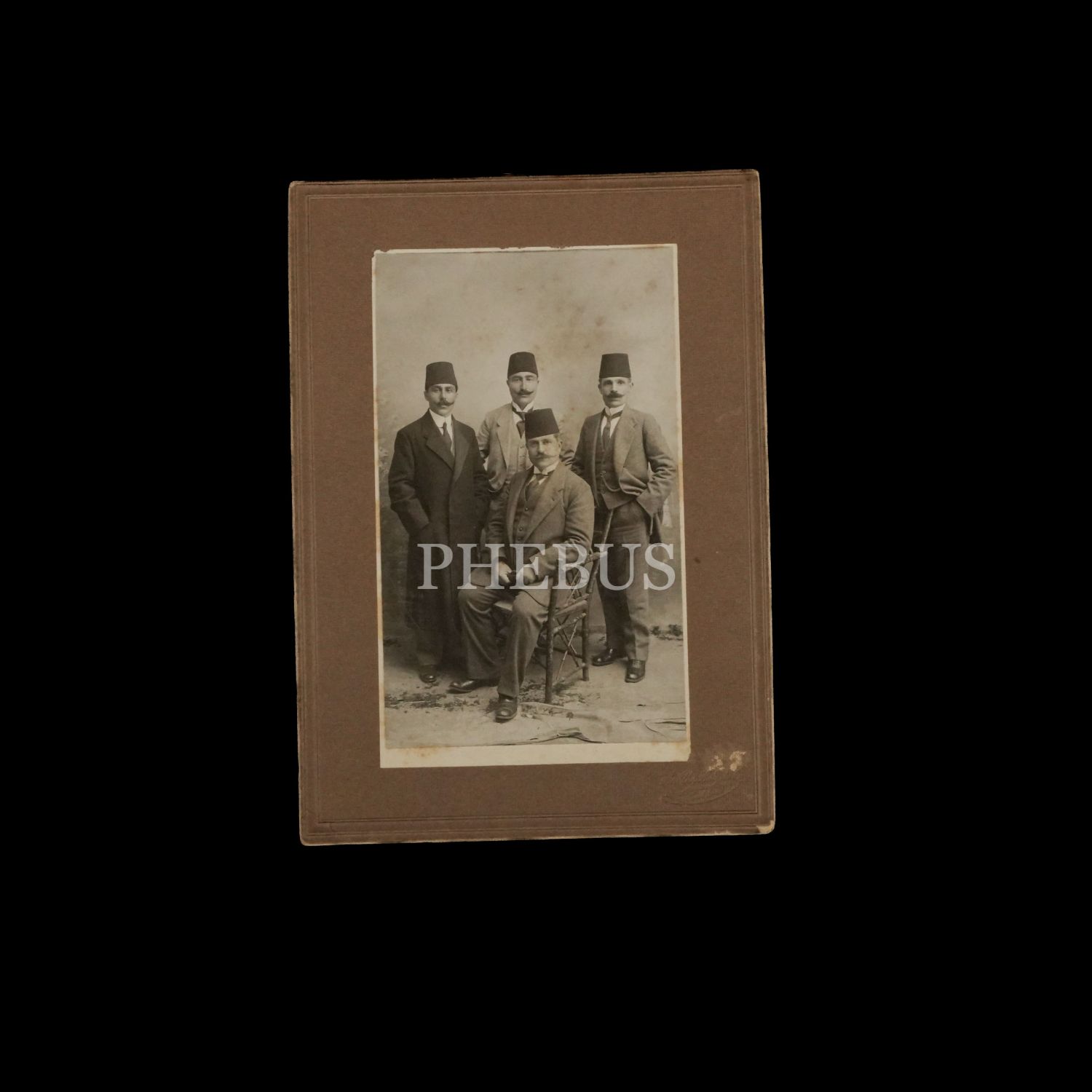 Dört Osmanlı beyefendisinin stüdyo hatıra fotoğrafı, fotoğraf 11x19 cm, paspartu 18x26 cm...