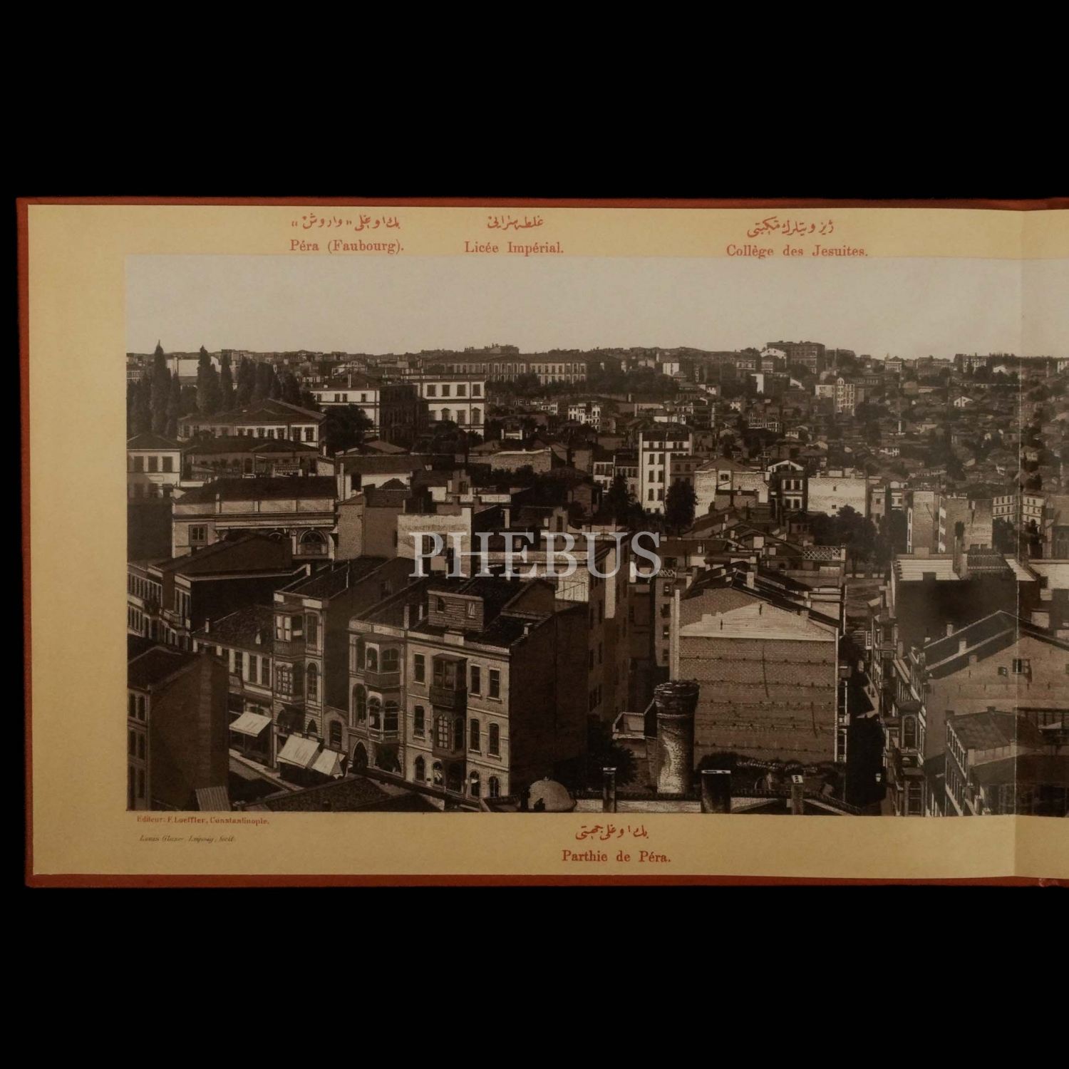 Sultan İkinci Abdülhamid döneminde F. Leoffler (Löfler) tarafından litografi tekniğiyle hazırlanmış İstanbul panoraması ile Boğaziçi haritasının, kabartmalı özel ciltlerinde sınırlı sayıda basılan tıpkı basımları...