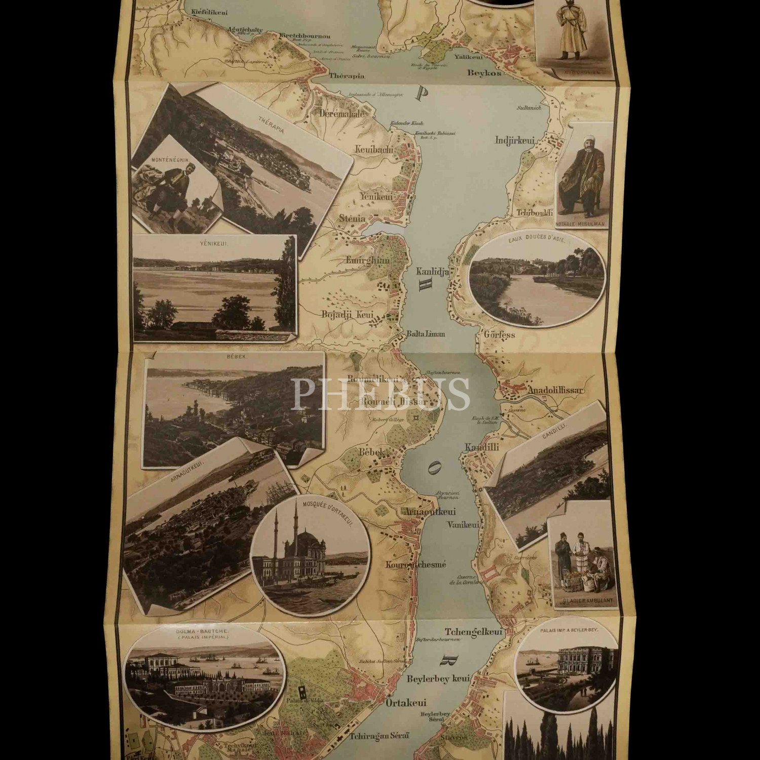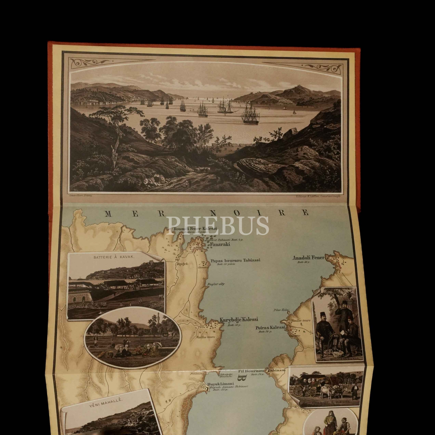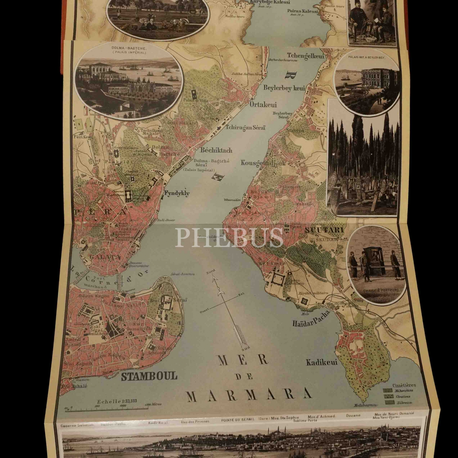 Özel kabartmalı ciltlerinde sınırlı sayıda basılan tıpkı basım İstanbul panoraması ve bol görselli Boğaziçi haritası...