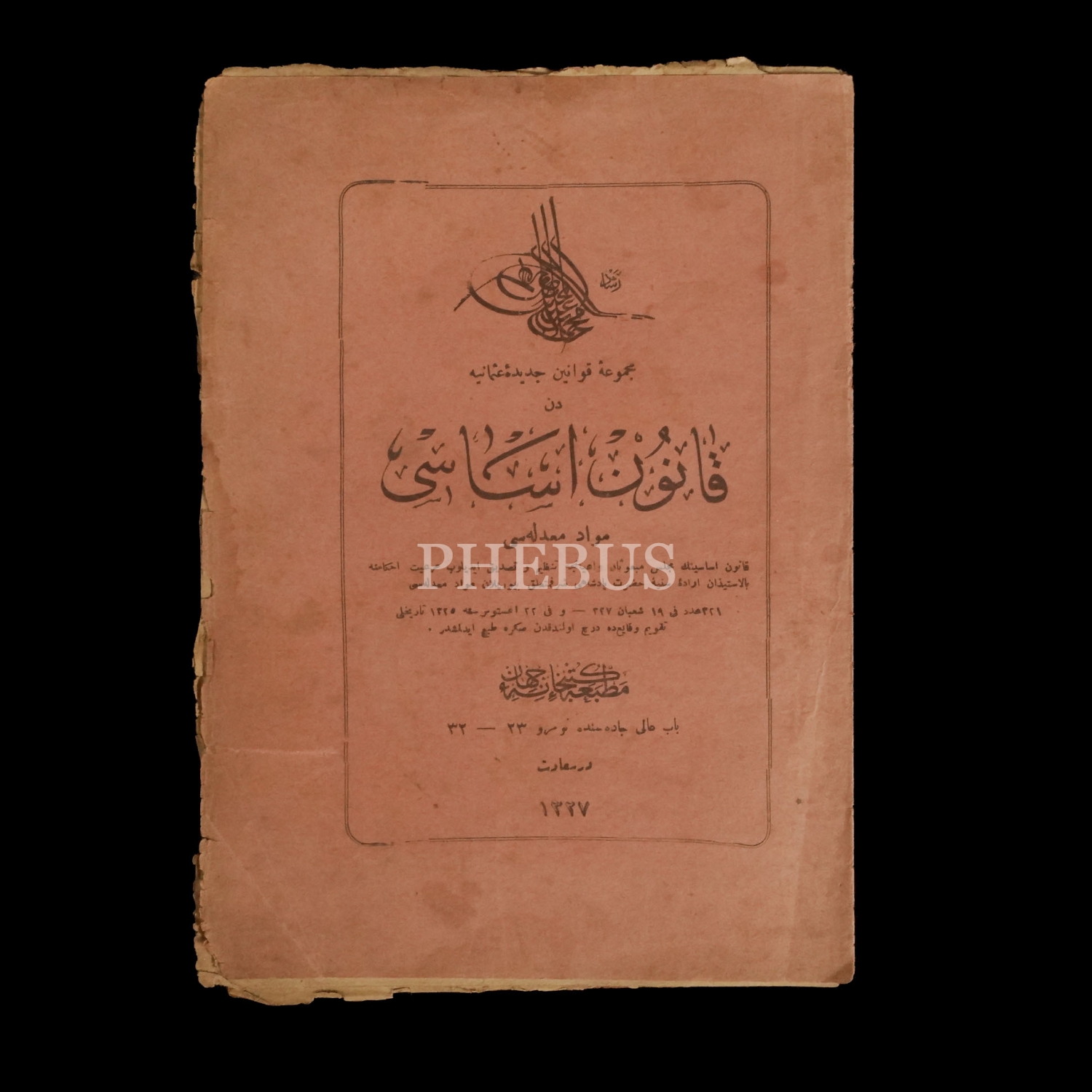 KANUN-İ ESASİ MEVAD-I MUADELESİ, 1327, Matbaa-i Kütüphane-i Cihan, 8 sayfa, 15x20 cm...
