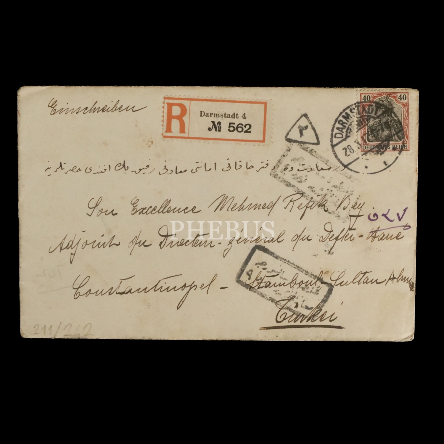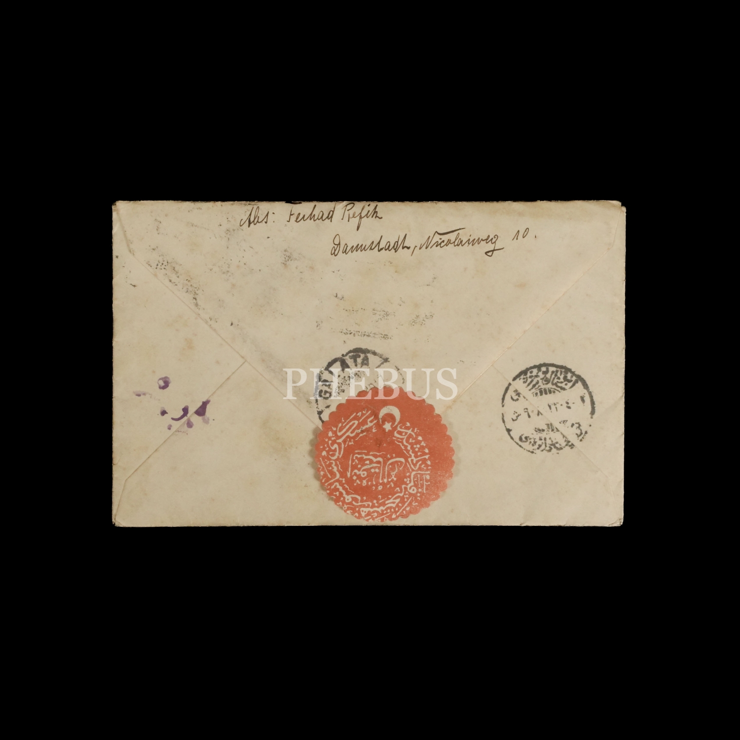 "Askeri Sansür Heyetince Kapatılmıştır" yazılı sansür vinyetli, Almanca kaleme alınmış mektup ve zarfı, 16x11 cm...