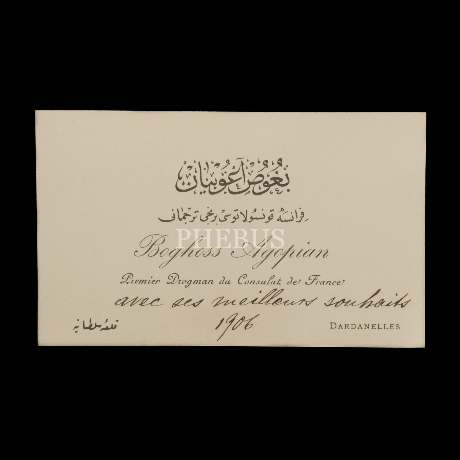 Fransız Konsolosluğu Birinci Tercümanı Bohoss Agopyan´ın iki dilde kartviziti, 10x6 cm...