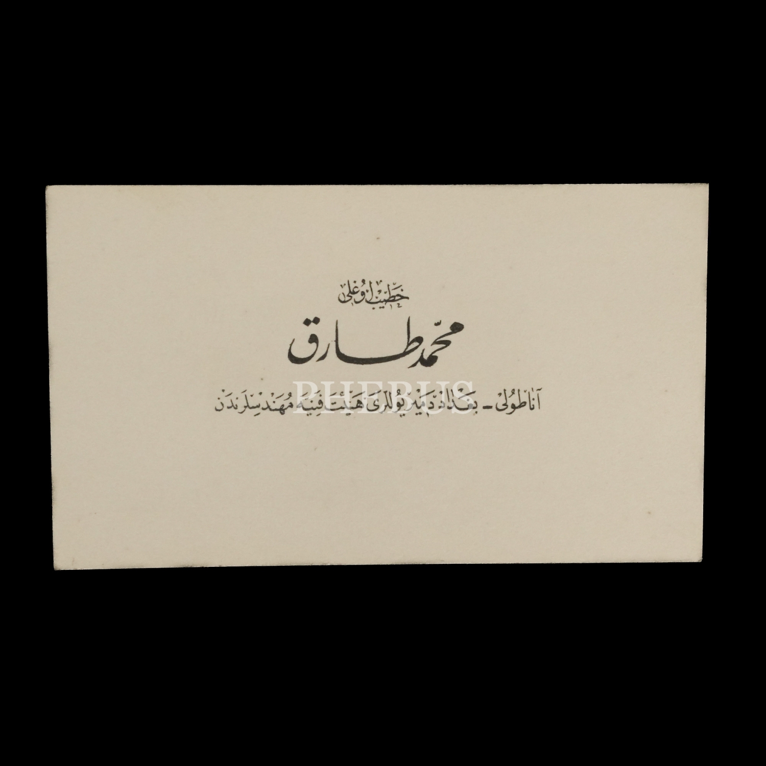 Anadolu - Bağdat Demiryolları Heyet-i Fenniye Mühendisi Hatipoğlu Mehmed Tarık´ın Osmanlıca kartviziti, 9x6 cm...