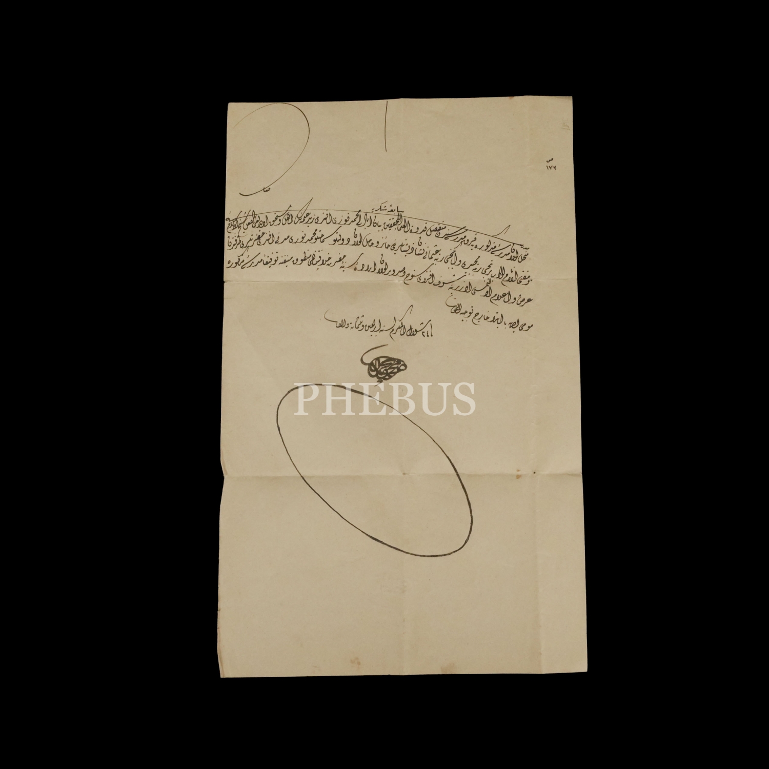 Osmanlı Devleti´nin son Şeyhülislamı Mehmed Nuri tarafından Seb´a-i Şükriye Medresesi Müderrisi Mehmed Fevzi Efendi´ye İptida-i Hariç derecesi verildiğine dair evrak, 1340, 26x40 cm...