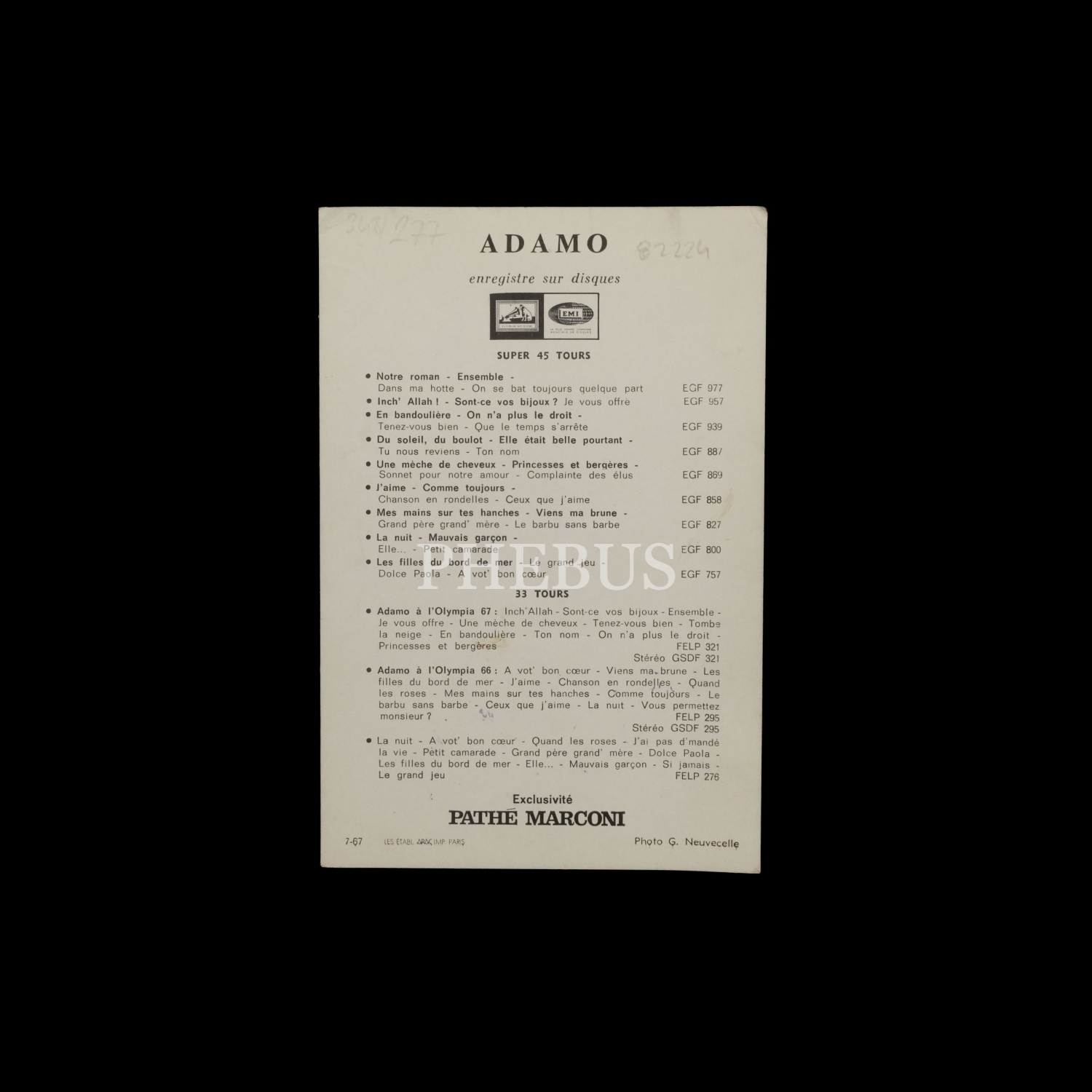 Adomo´dan ithaflı ve imzalı plak firması kartpostalı, 10x15 cm...