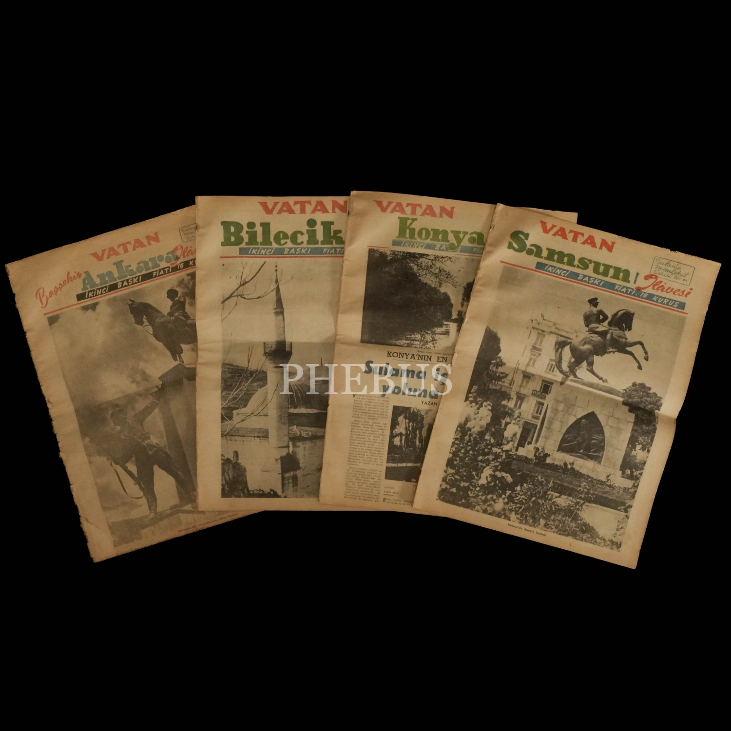 Vatan gazetesinin "Memleket Serisi" ilavelerinden 4 nüsha (Samsun, Ankara, Konya, Bilecik), 29x40 cm...