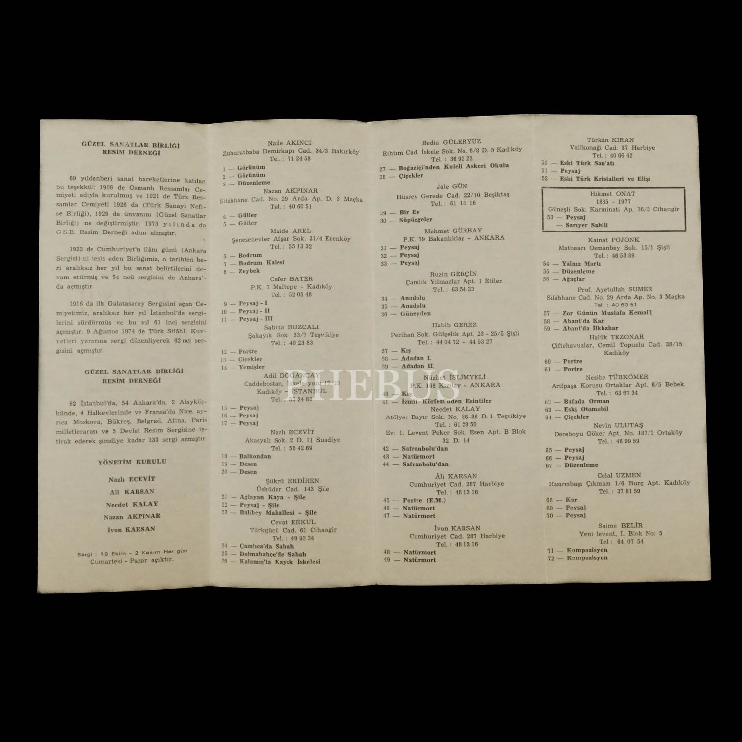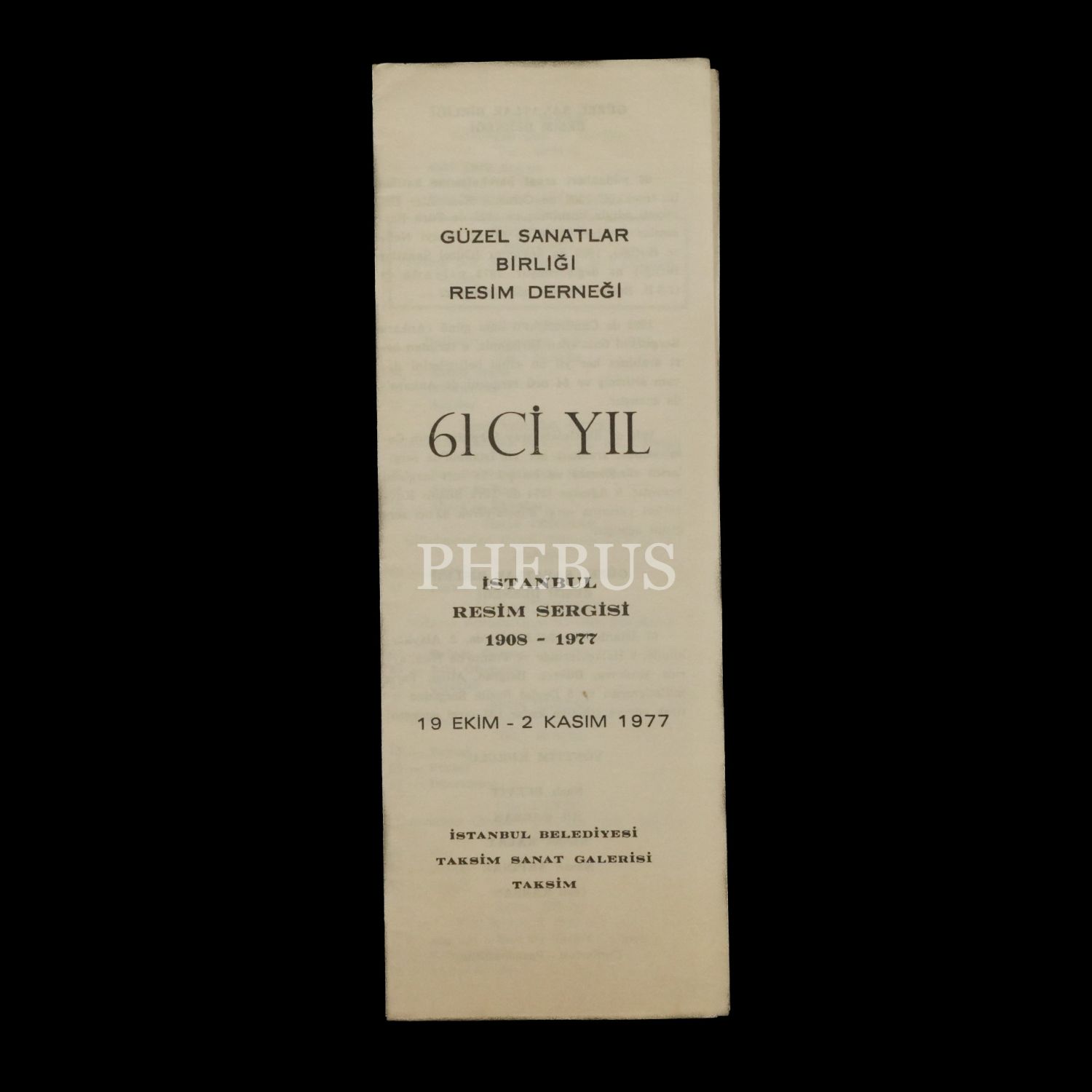 Güzel Sanatlar Birliği Resim Derneği 61 ci Yıl: İSTANBUL RESİM SERGİSİ (1908-1977), 19 Ekim-2 Kasım 1977, İstanbul Belediyesi Taksim Sanat Galerisi, 8x23 cm...