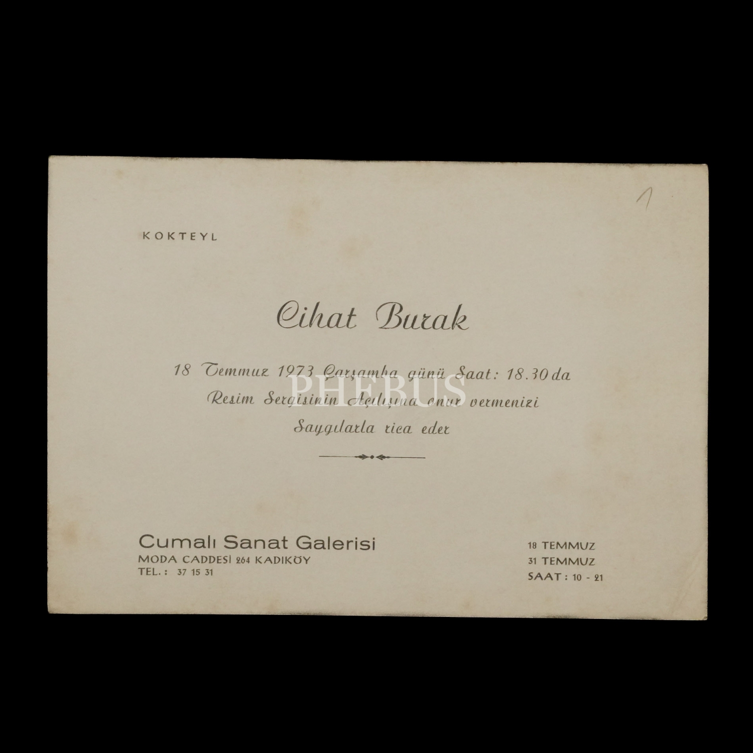 Cihat Burak Resim Sergisi davetiyesi, 18 Temmuz 1973, Cumalı Sanat Galerisi, 16x11 cm...