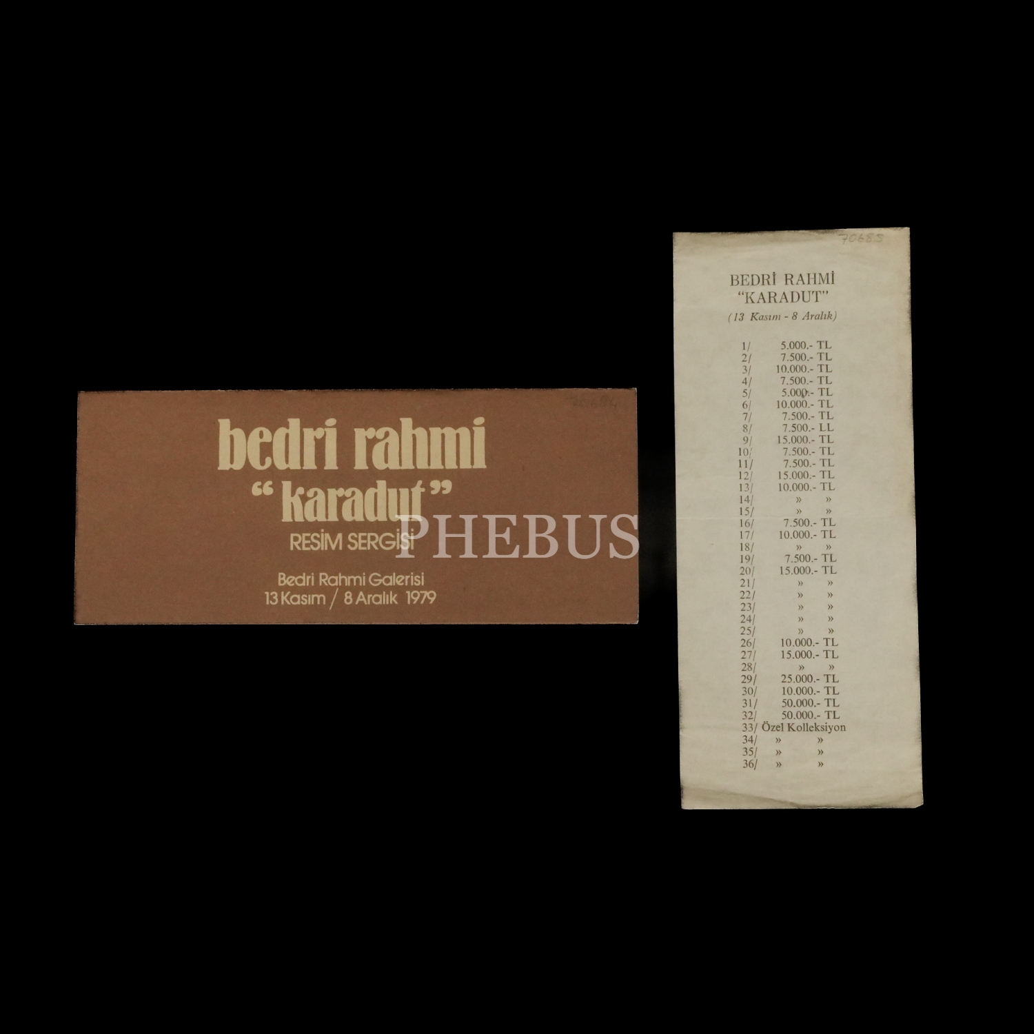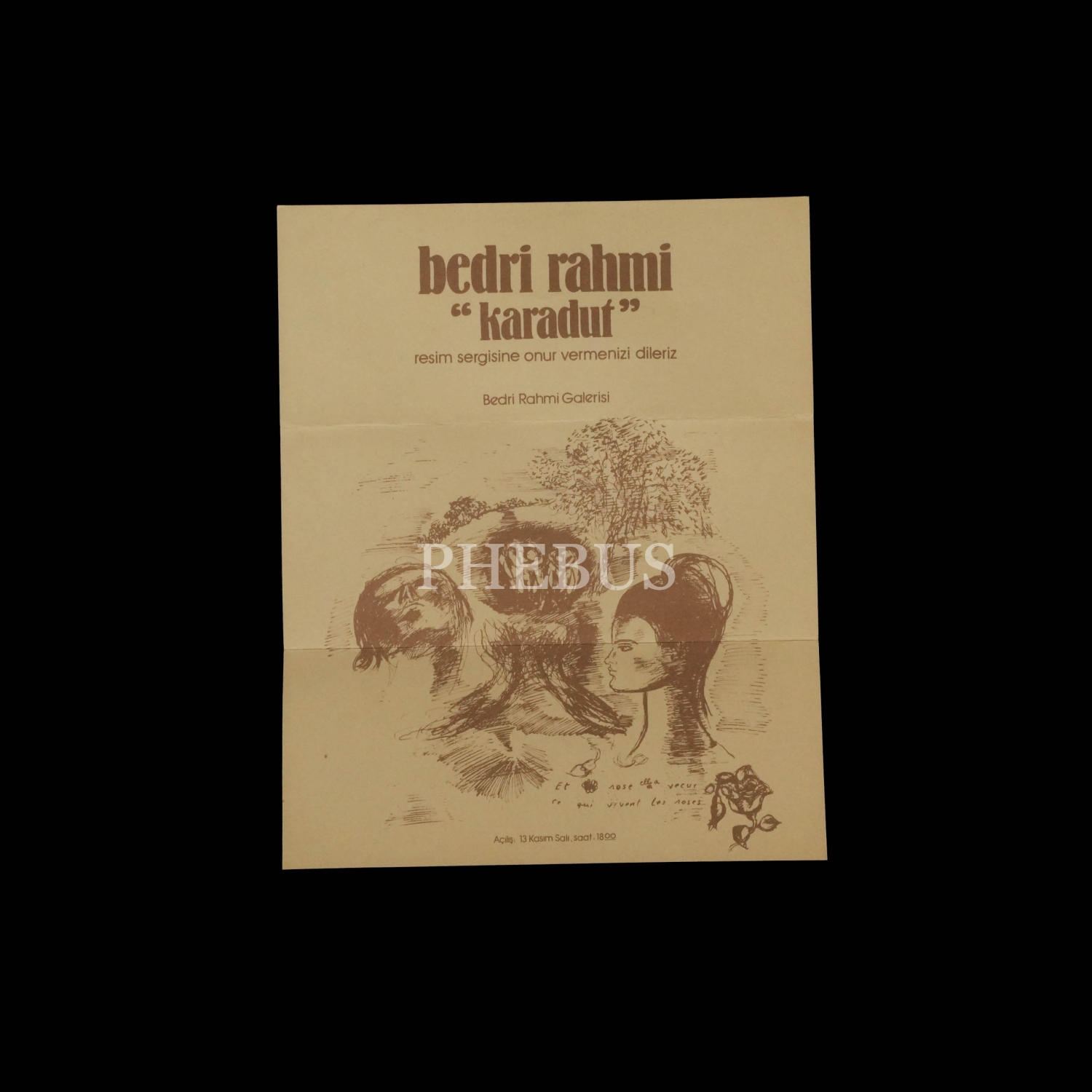 Bedri Rahmi "Karadut" Resim Sergisi davetiyesi, 13 Kasım-8 Aralık 1979, Bedri Rahmi Galerisi, 22x9 cm...