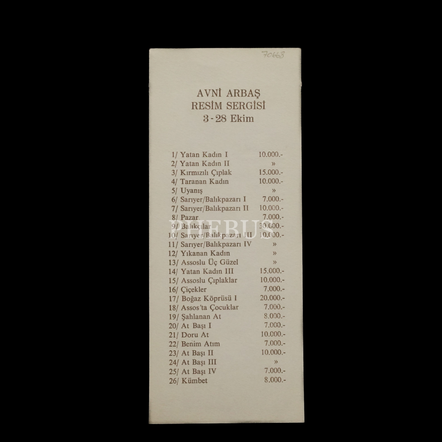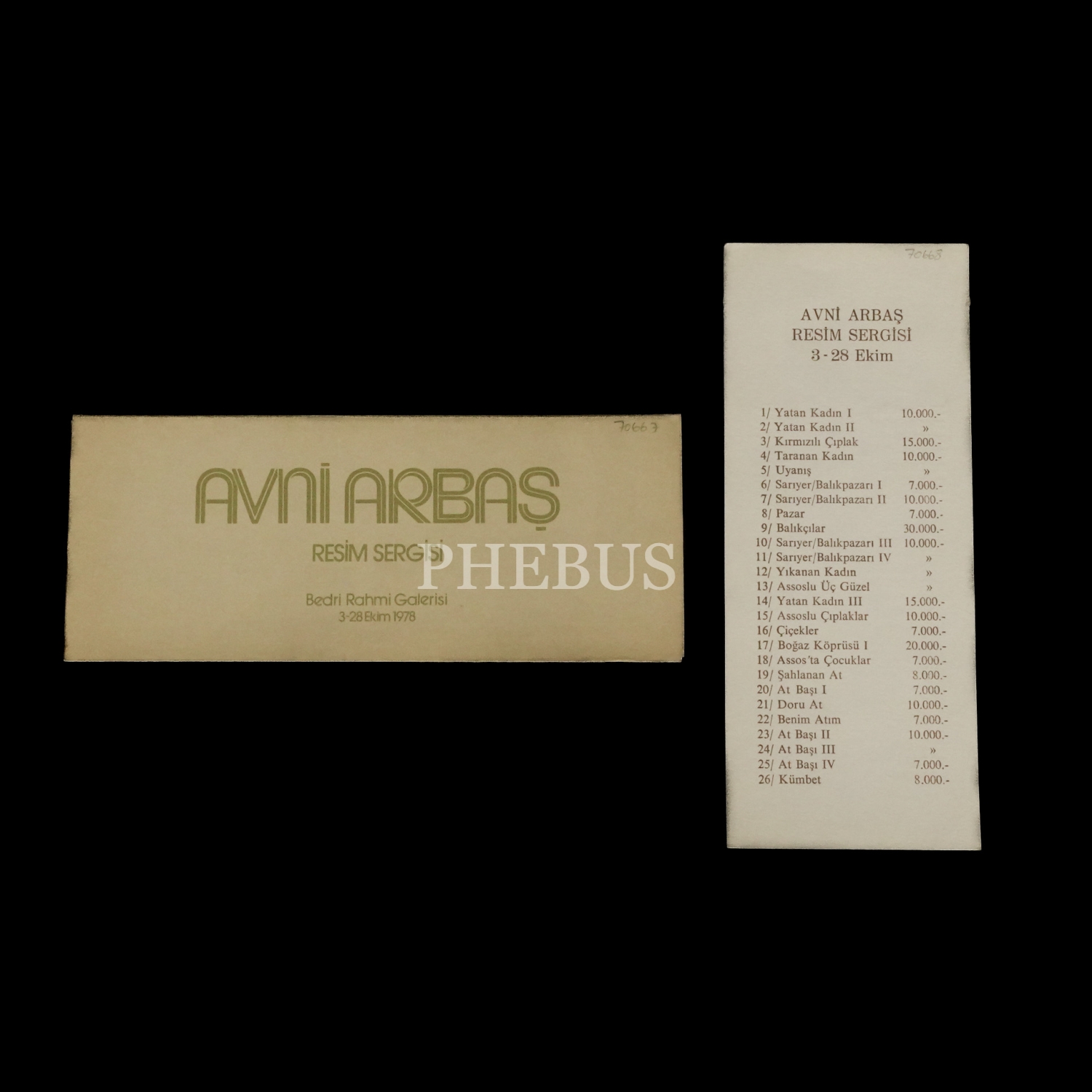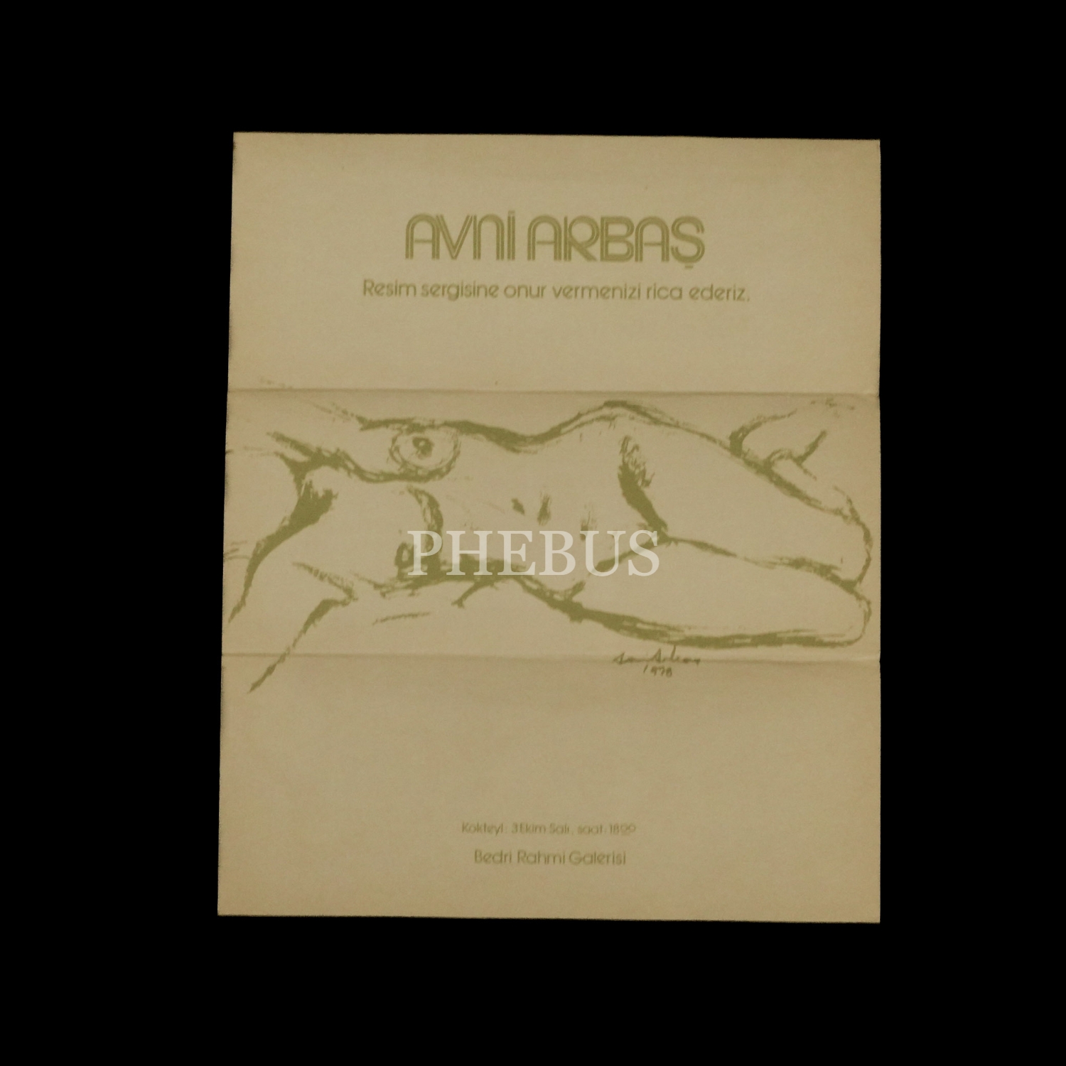 Avni Arbaş Resim Sergisi davetiyesi, 3-28 Ekim 1978, Bedri Rahmi Galerisi, 22x9 cm...
