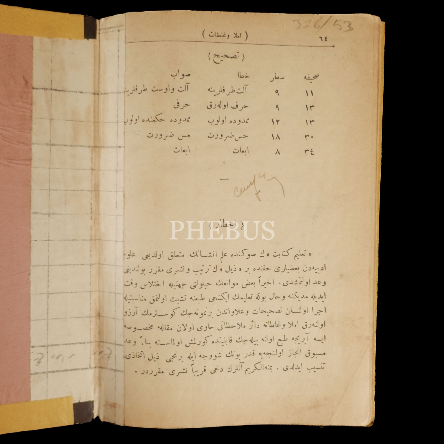 TALİM-İ KİTABET (Zeyl 1: İmla ve Galatât), Reşat, 1308, Kaspar Matbaası, 64 sayfa, 18x13 cm...