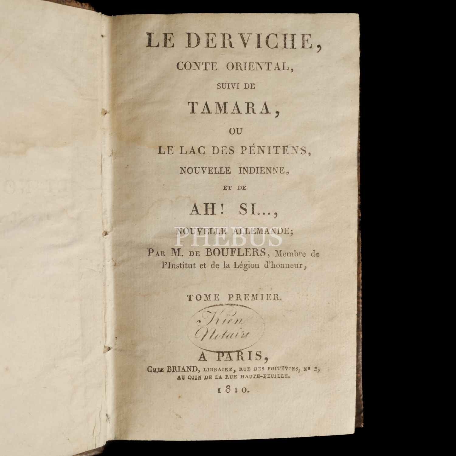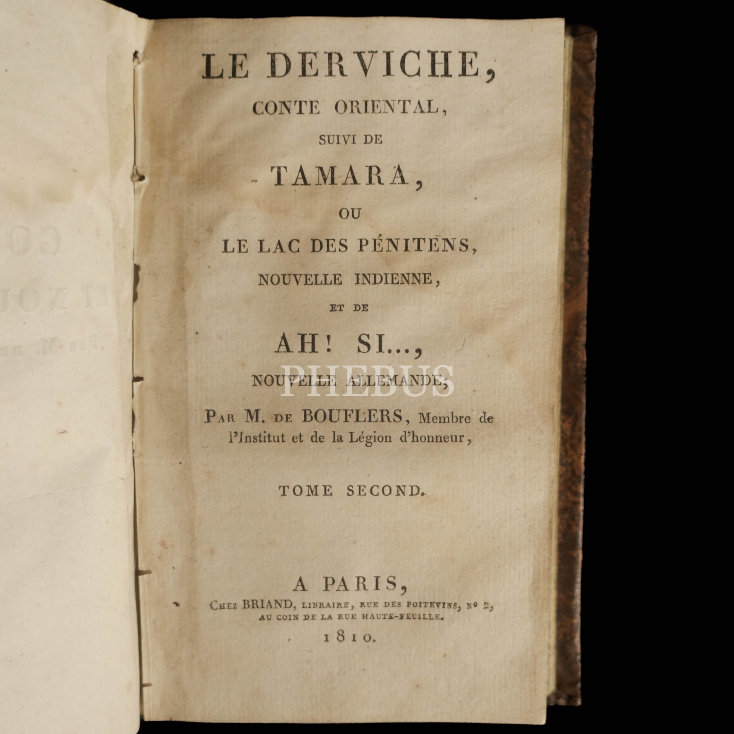 LE DERVICHE CONTE ORIENTAL SUIVI DE TAMARA, OU LE LAC DES PENITENTS, NOUVELLE INDIENNE, ET DE AH! SI..., NOUVELLE ALLEMANDE; Bouflers, 1810, Paris, 2 cilt bir arada takım, 199+196 sayfa, Fransızca, 16x10 cm...