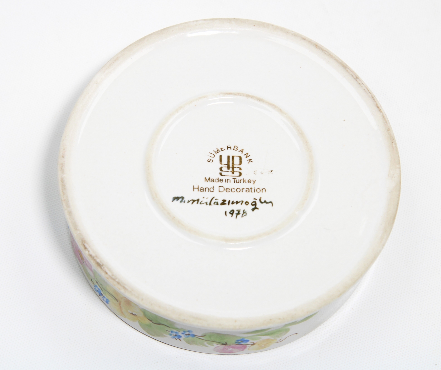 Sümerbank, el yapımı süslemeli şekerlik, M. Mülazımoğlu imzalı, 13x5 cm