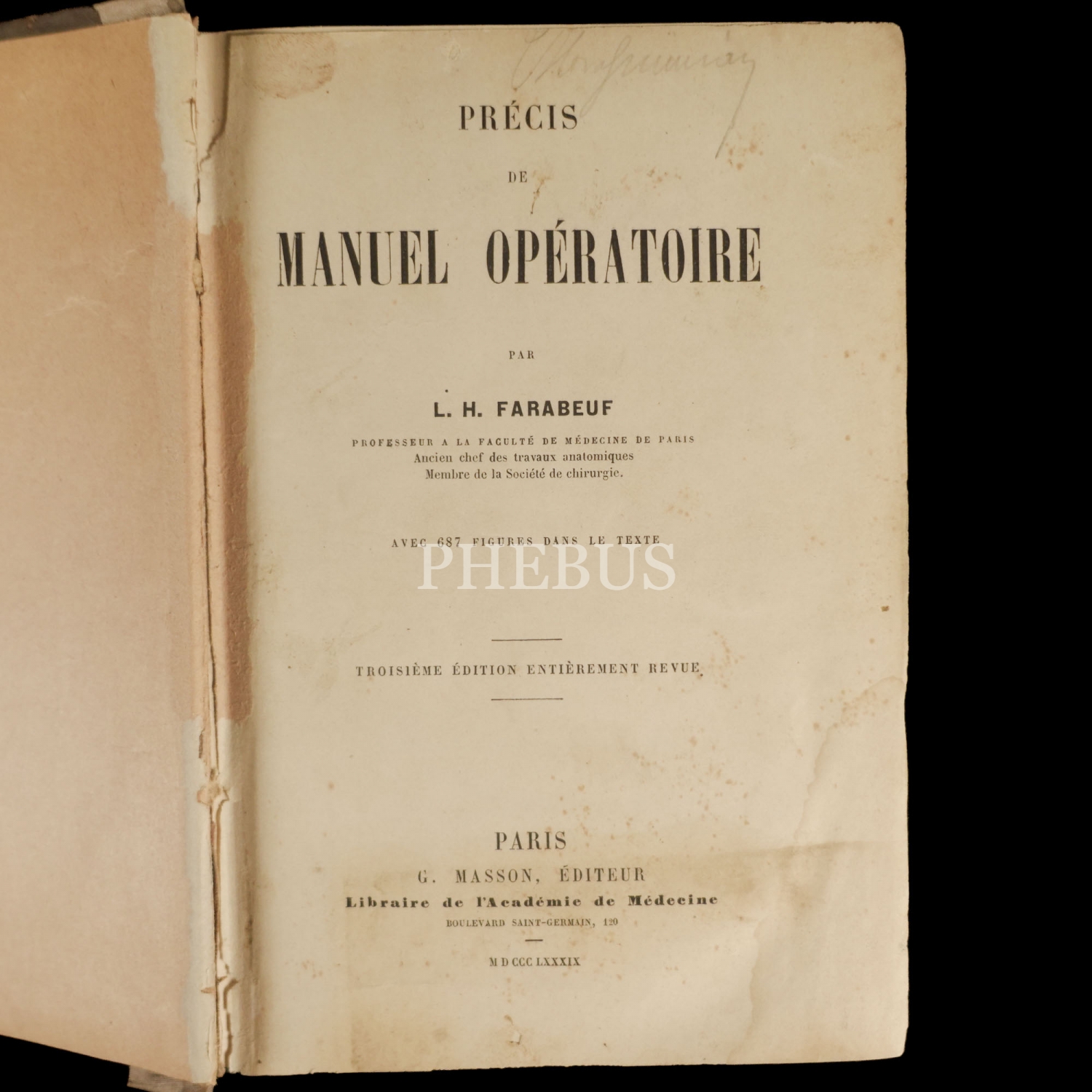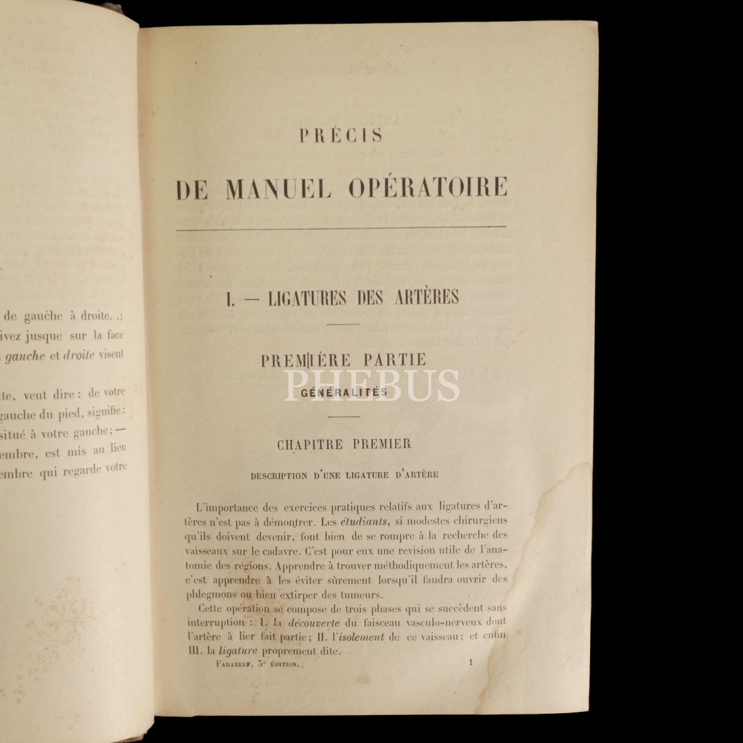 PRECIS DE MANUEL OPERATOIRE, L. H. Farabeuf, 1889, Paris, 926 sayfa, 20x13 cm...