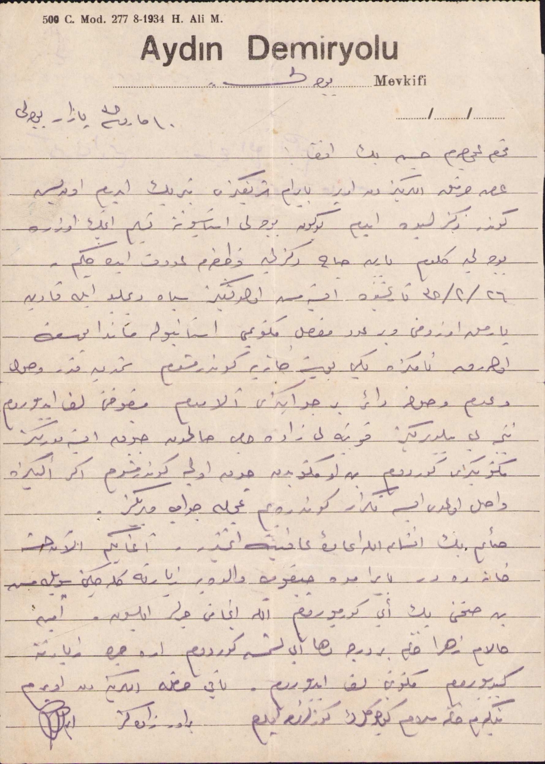 Aydın Demiryolu antetli Osmanlıca yazılı evrak, 14x20 cm