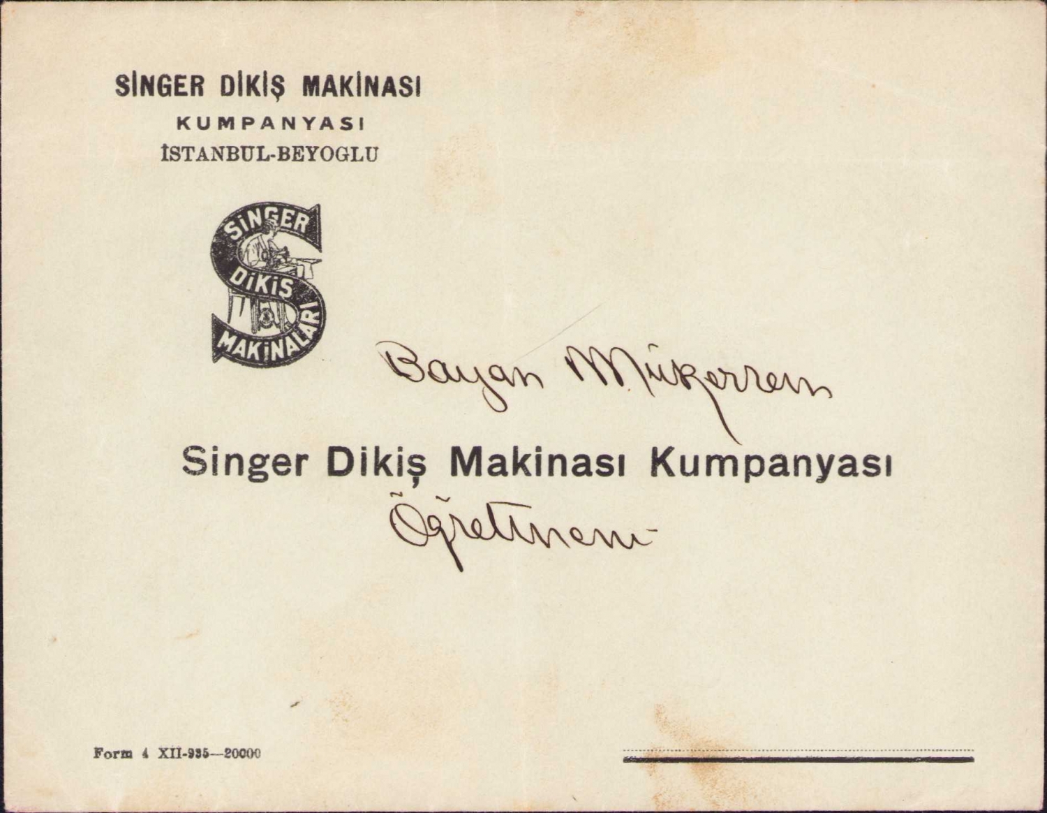 Singer Dikiş Makinesi Kumpanyası antetli zarf