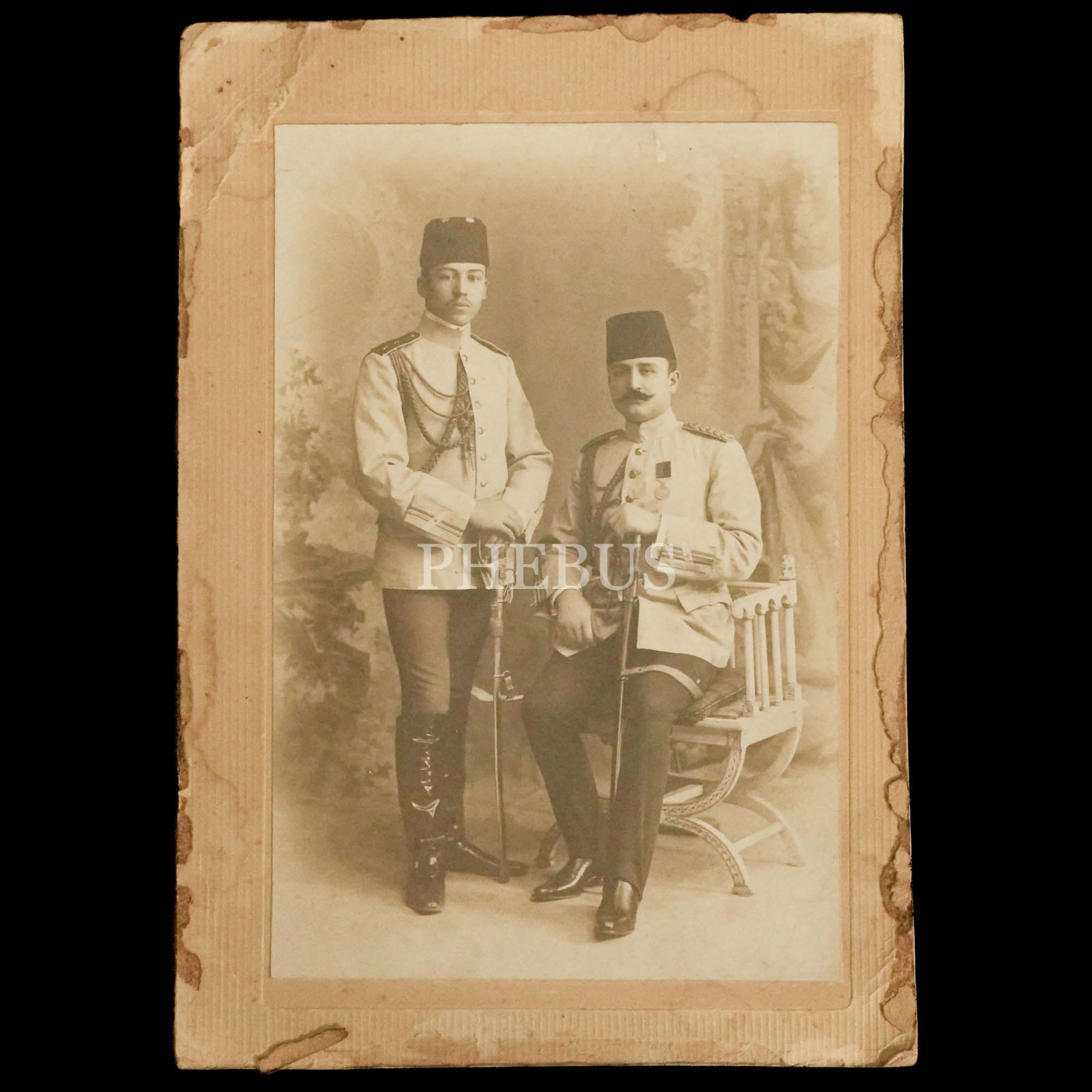 Yaver kordonlu -biri madalyalı- iki Osmanlı subayının kabin fotoğrafı, 16x23 cm...