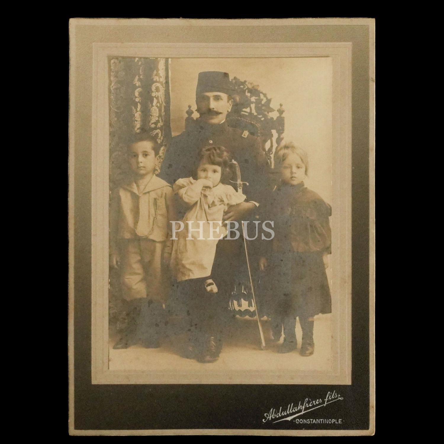 Bir Osmanlı subayının çocuklarıyla birlikte Abdullah Freres Fils Fotoğrafhanesi´nde (Constantinople) aldırdığı kabin fotoğraf, 14x19 cm...