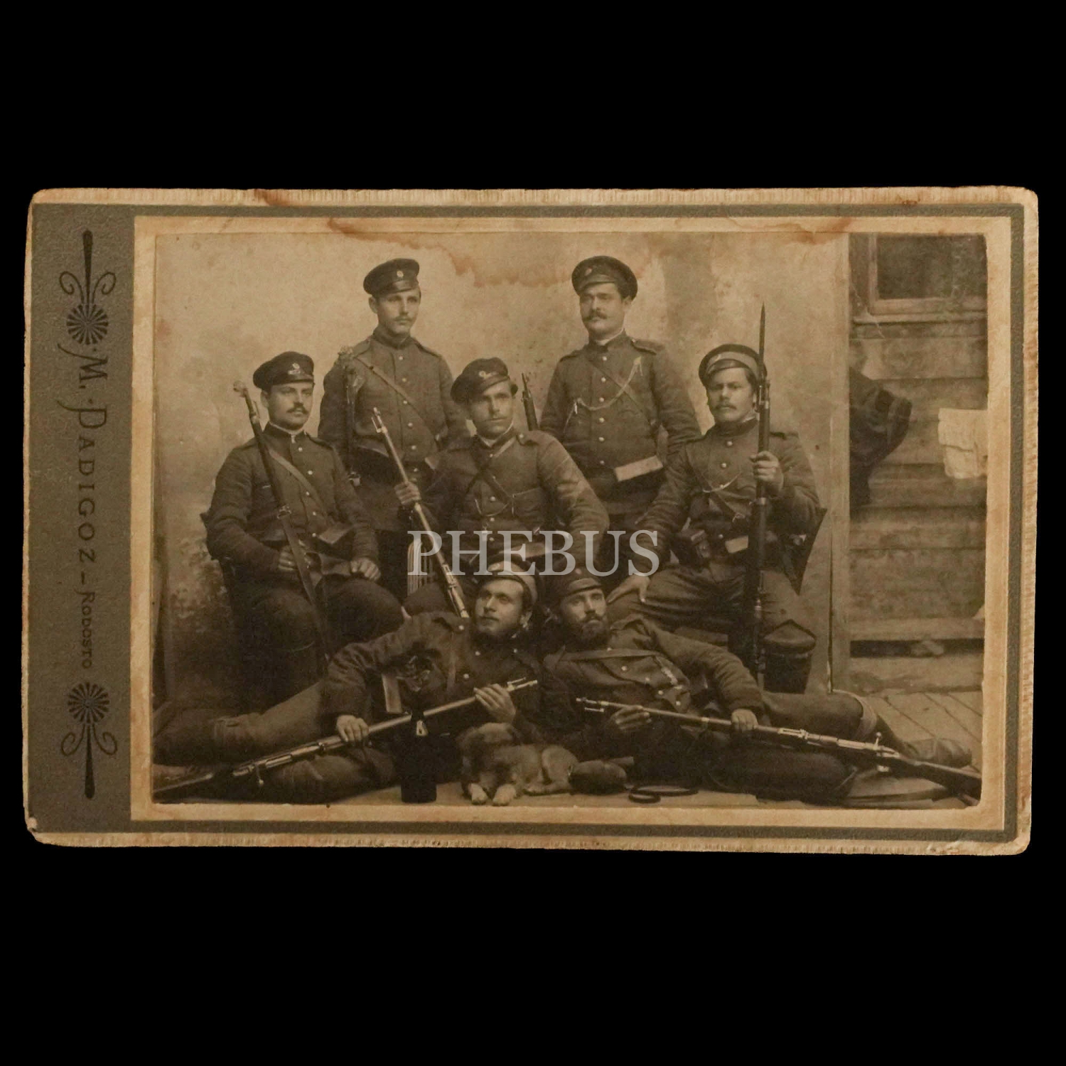 Balkan Harbi yıllarında Tekirdağ´ı işgal eden Bulgar askerlerinden bir grubun, M. Padigoz Fotoğrafhanesi´nde (Rodosto [Tekirdağ]) aldırdıkları kabin fotoğraf, 1913, 17x11 cm...