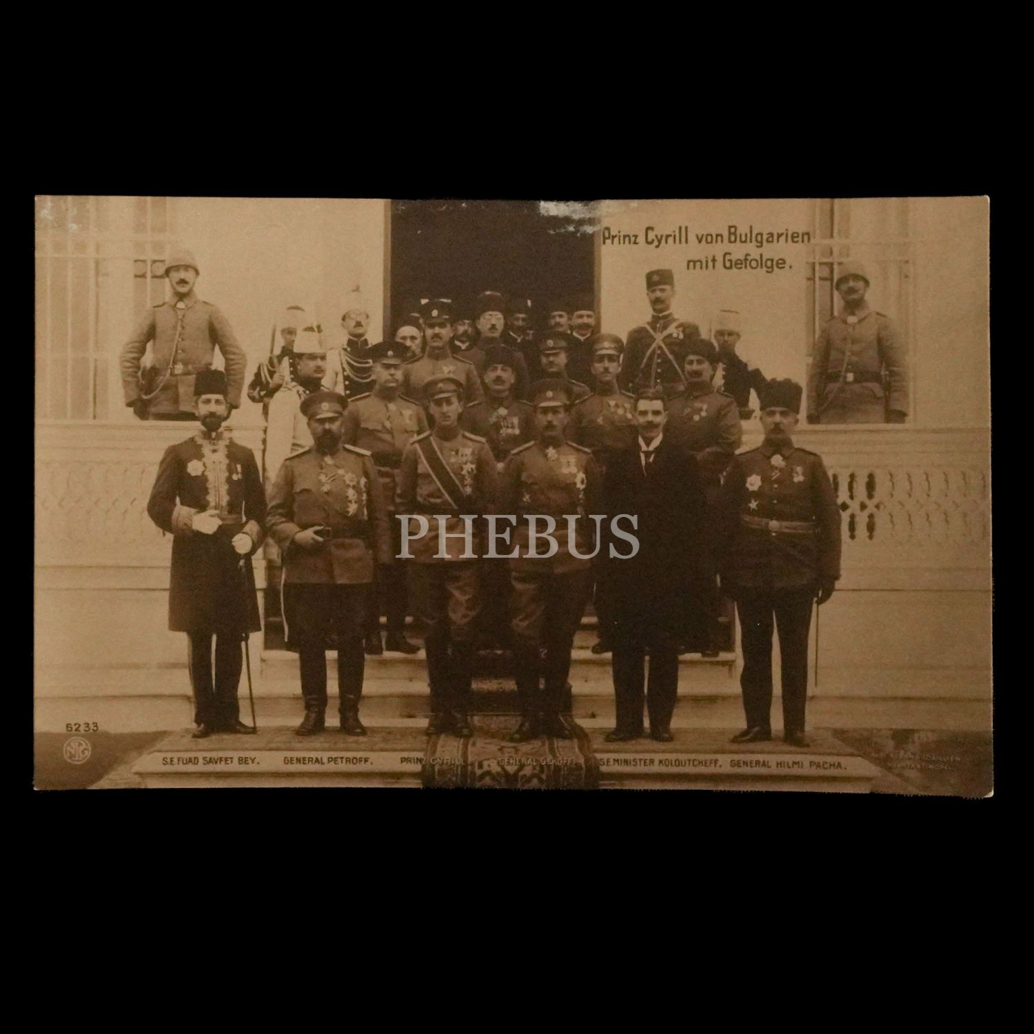 Bulgaristan Prensi Cyrill, maiyeti, Fuad Safvet Bey ve General Hilmi Paşa aynı karede, 14x9 cm...