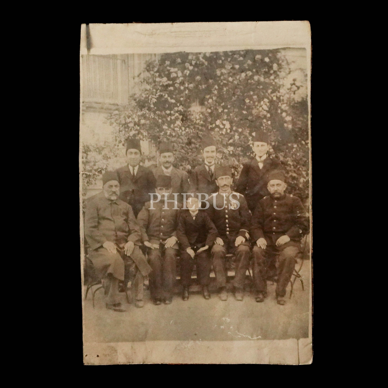 Osmanlı subayları ile çeşitli yaşlarda sivillerin toplu hatıra fotoğrafı, 12x17 cm...