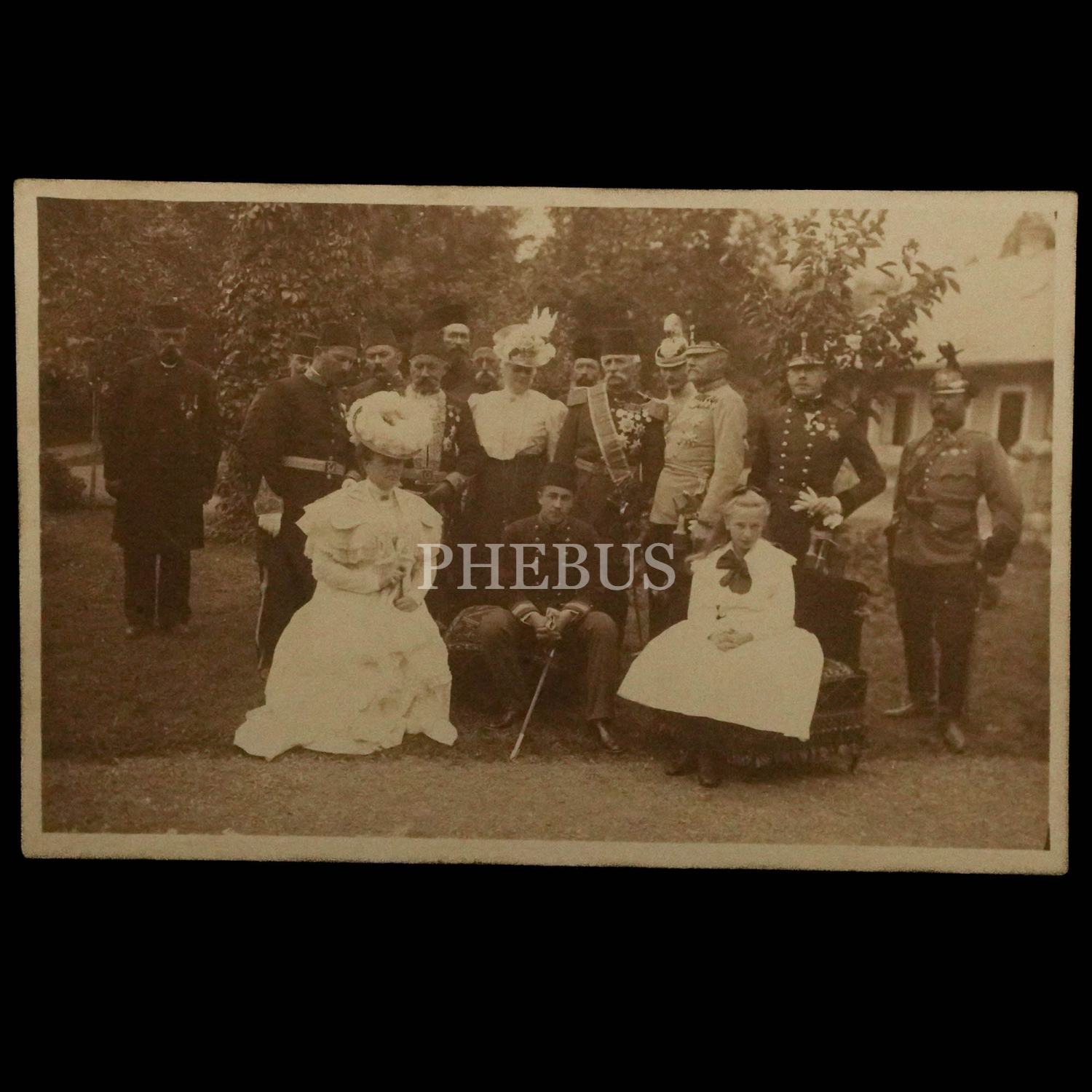 Özel bir günde, ailelerin de katılımıyla bir araya gelen üst düzey Türk ve Alman generalleri ile saray muhafızları, 14x9 cm...