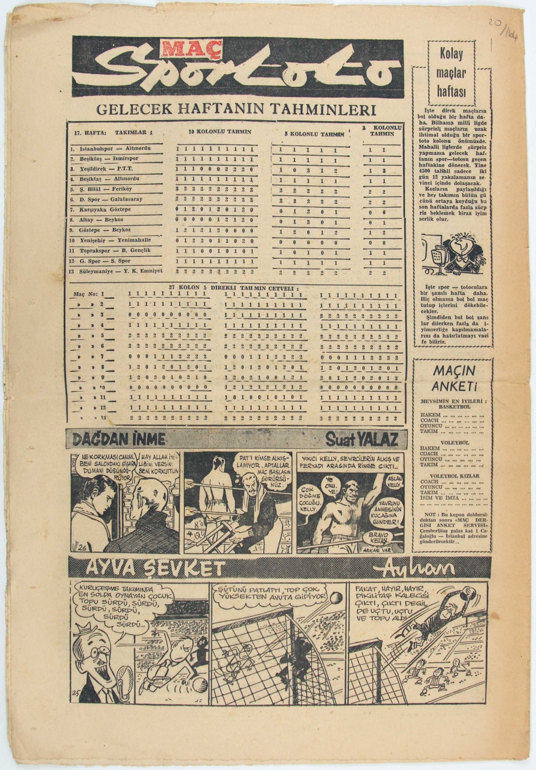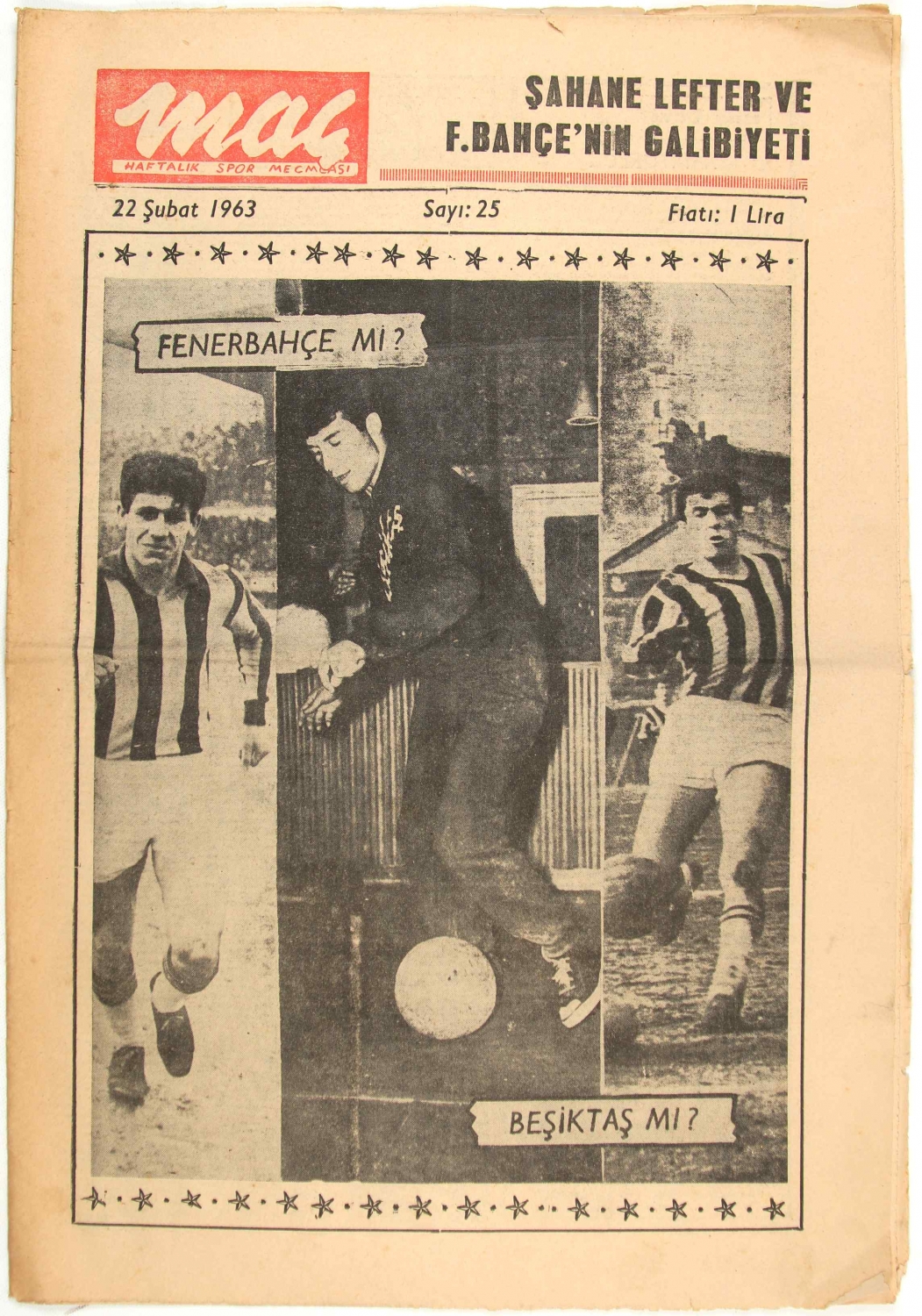 Maç Haftalık Spor Mecmuası, 1963, kapak "Fenerbahçe mi? Beşiktaş mı?" 11 sayfa, 29x44 cm